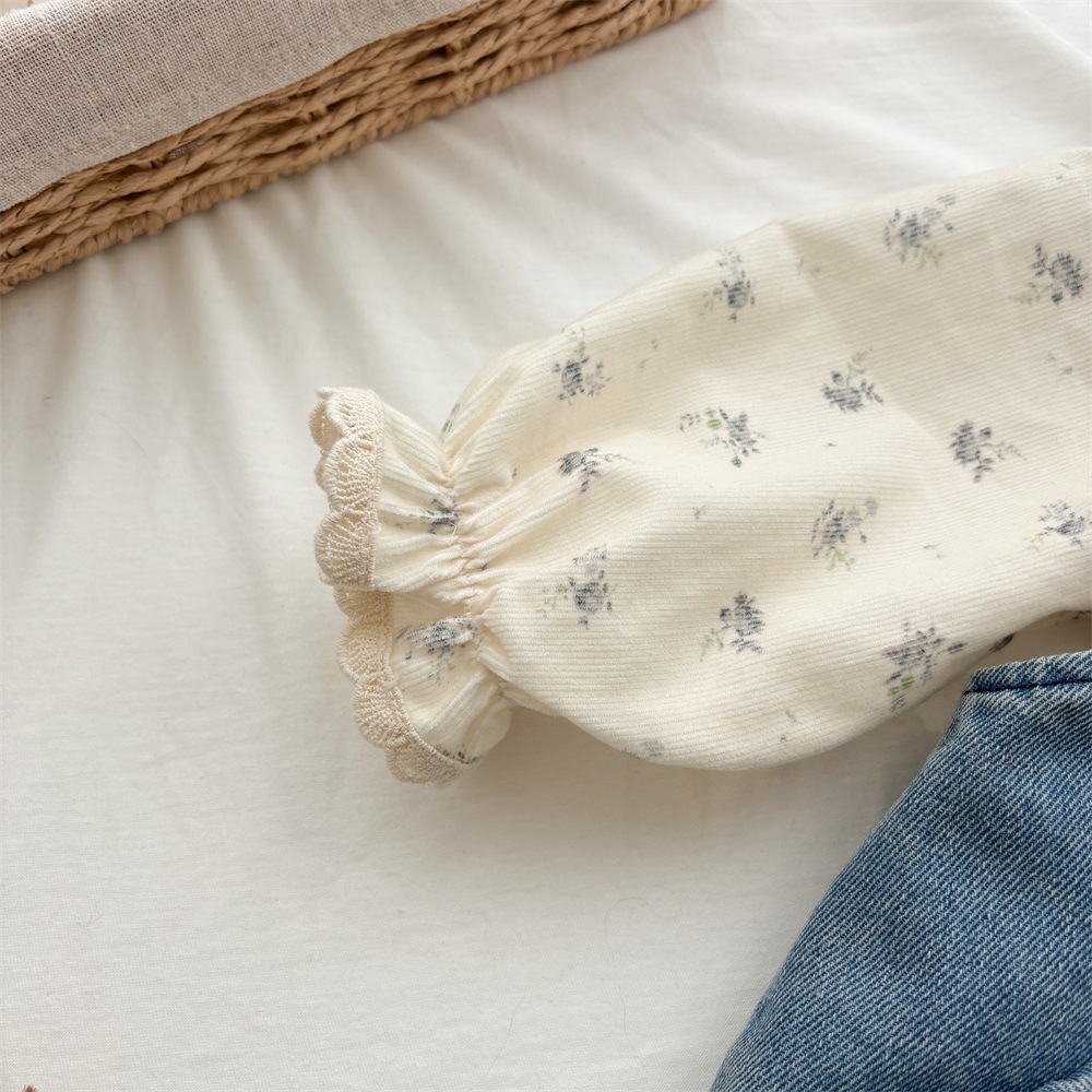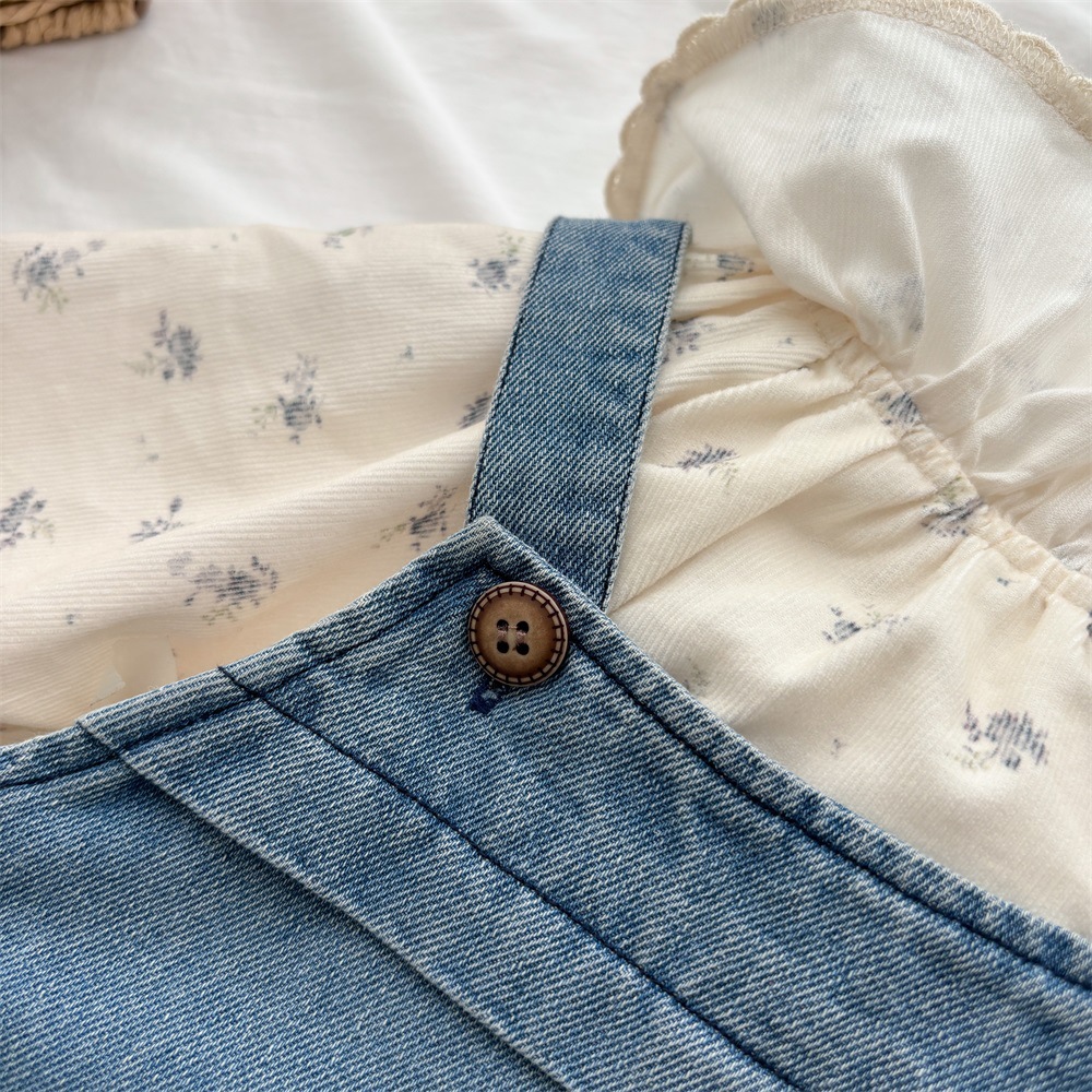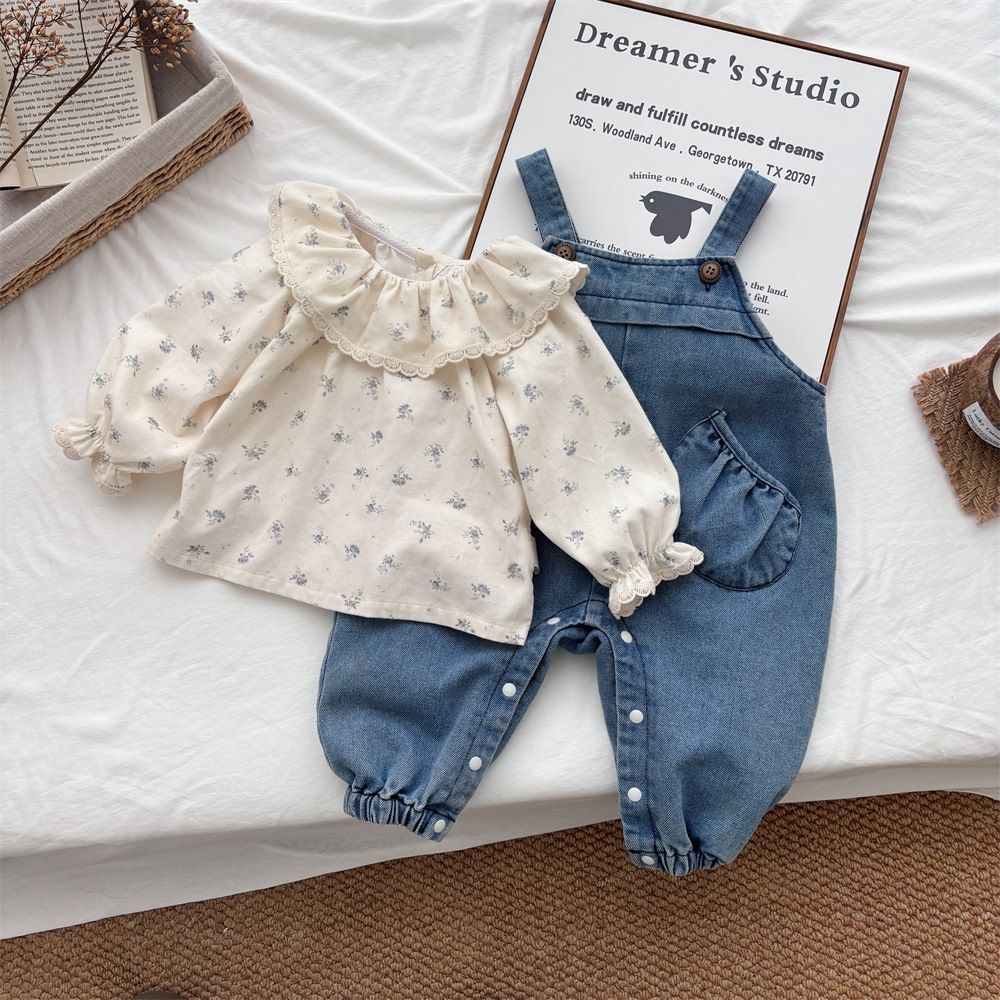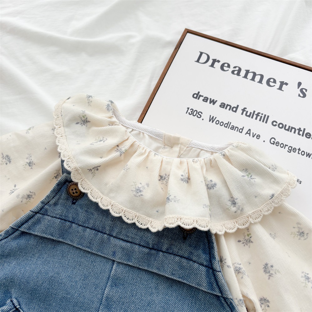 【甜美翻领清新衬衫背带裤两件套】秋装新款婴幼儿套装女童牛仔连身衣