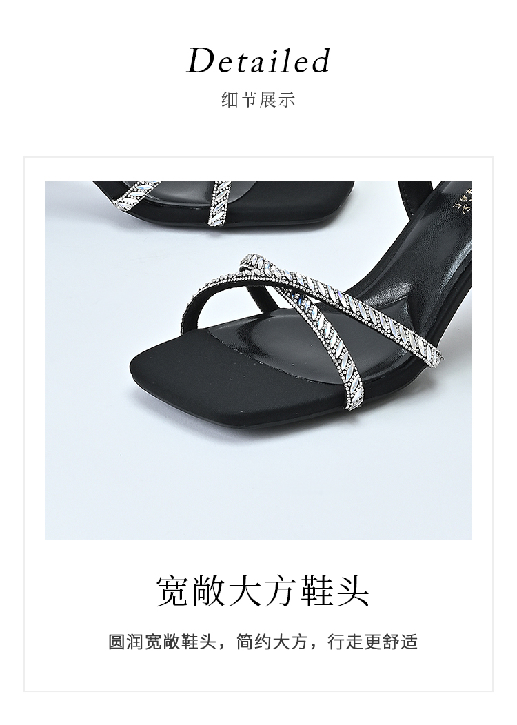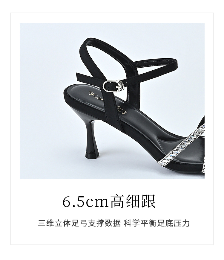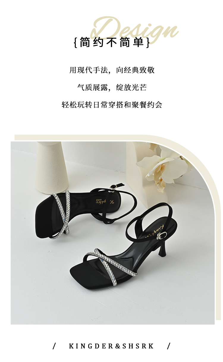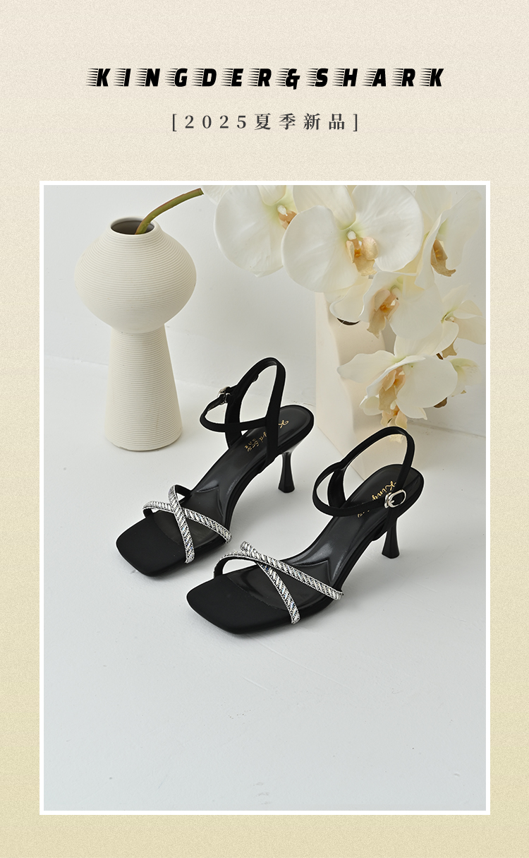 经典鲨2025年夏季新品气质简约露趾优雅时装细高跟鞋凉鞋女KW89-529091