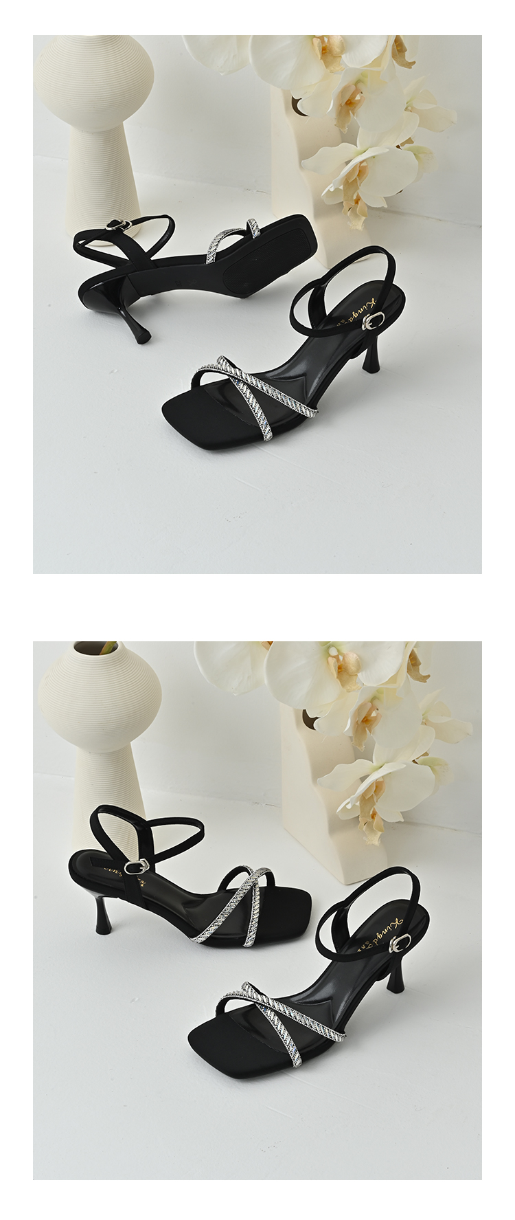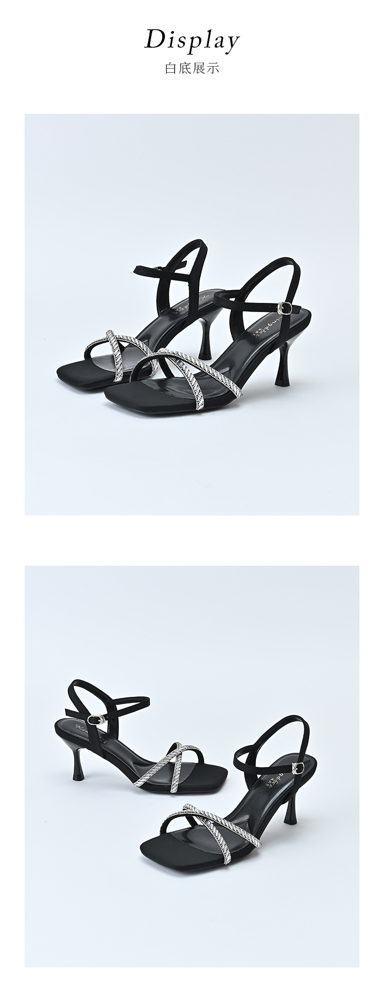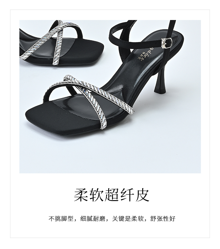 经典鲨2025年夏季新品气质简约露趾优雅时装细高跟鞋凉鞋女KW89-529091