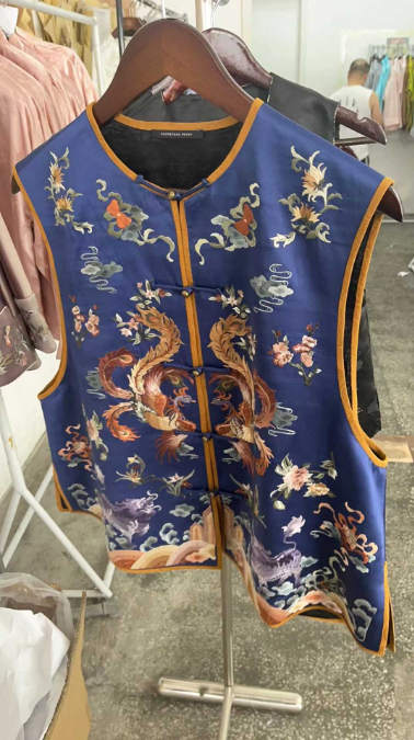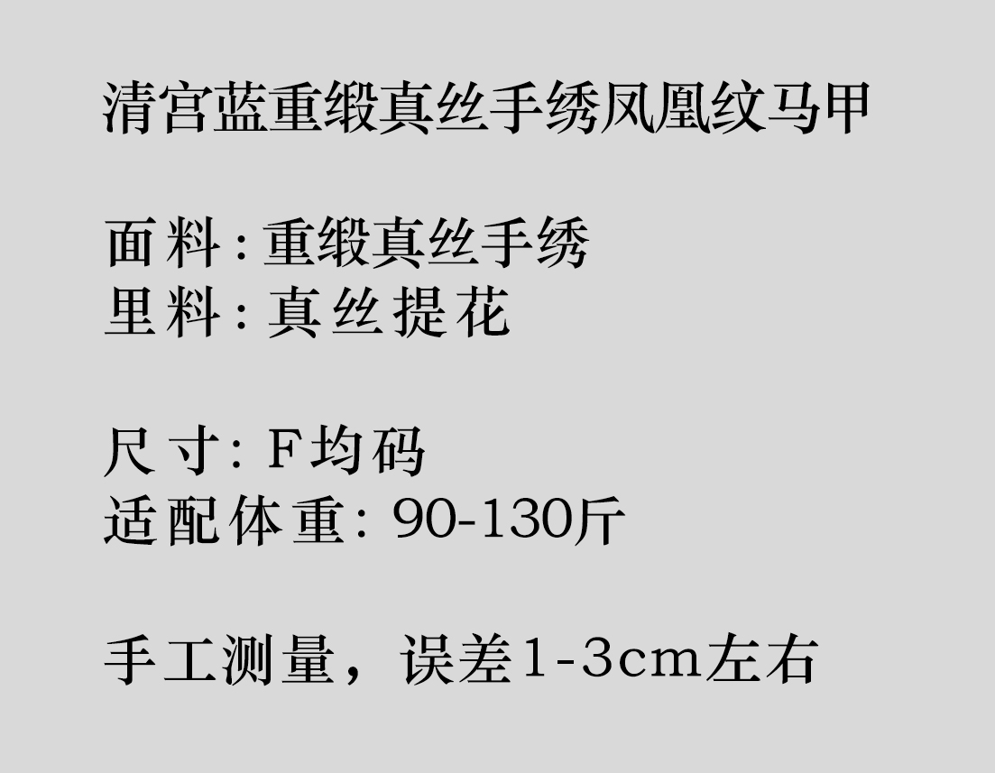 盛唐牡丹| 清宫蓝重缎真丝手绣风凰纹马甲-蓝色