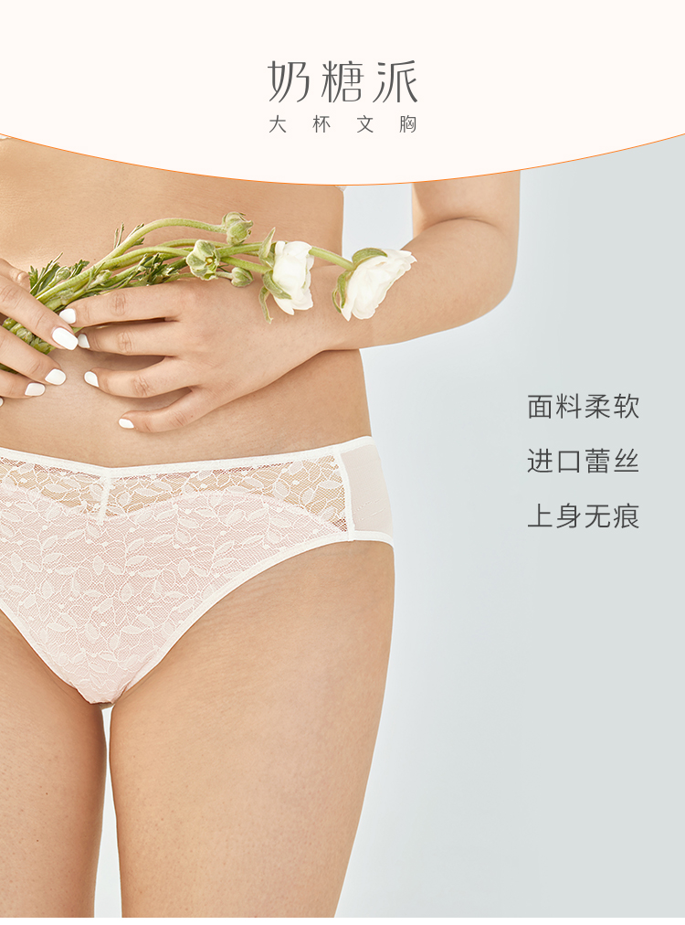 奶糖派至真蕾丝刺绣配套内裤女士三角低腰小裤轻薄清爽透气速干