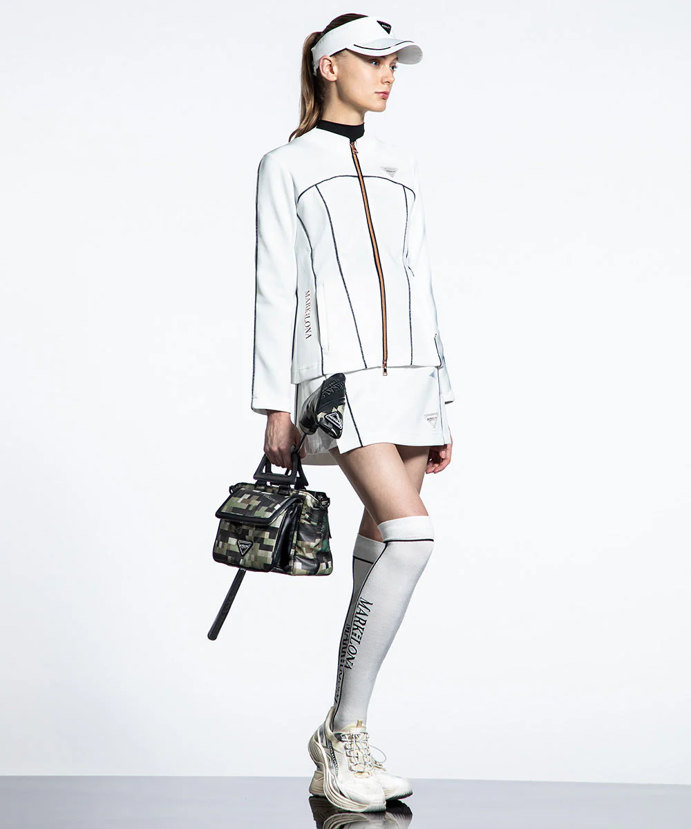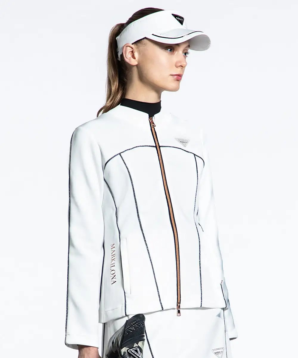 MARK & LONA 高尔夫女士新款 双色闪光滚边绳设计拉链夹克外套 带内衬短裙 运动套装