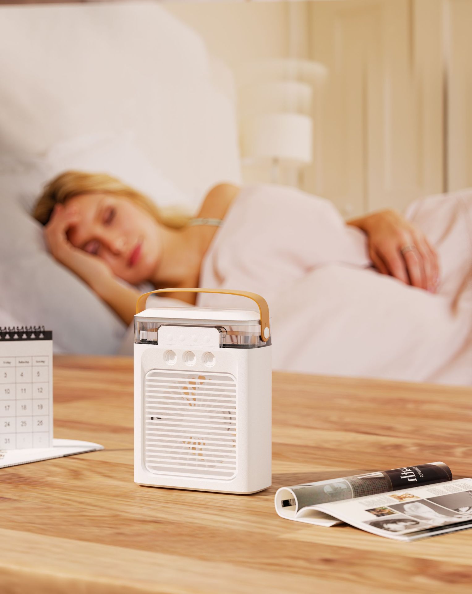 【滋润更舒适!孔喷雾风扇冷风机】高颜值便携台式喷雾风扇,强劲冷风,高效制冷清凉一夏,静音大风力办公桌面冷风机