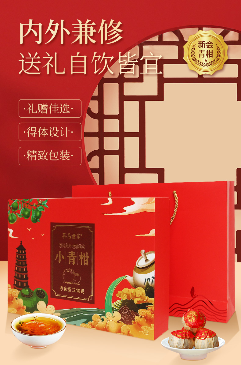 【金奖高颜值】茶马世家 正宗新会小青柑普洱熟茶叶陈皮柑普茶240g红色礼盒装