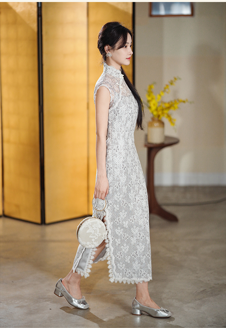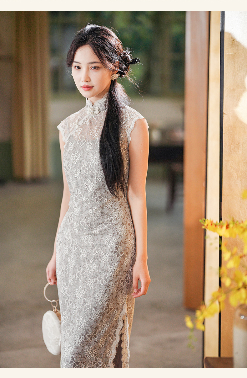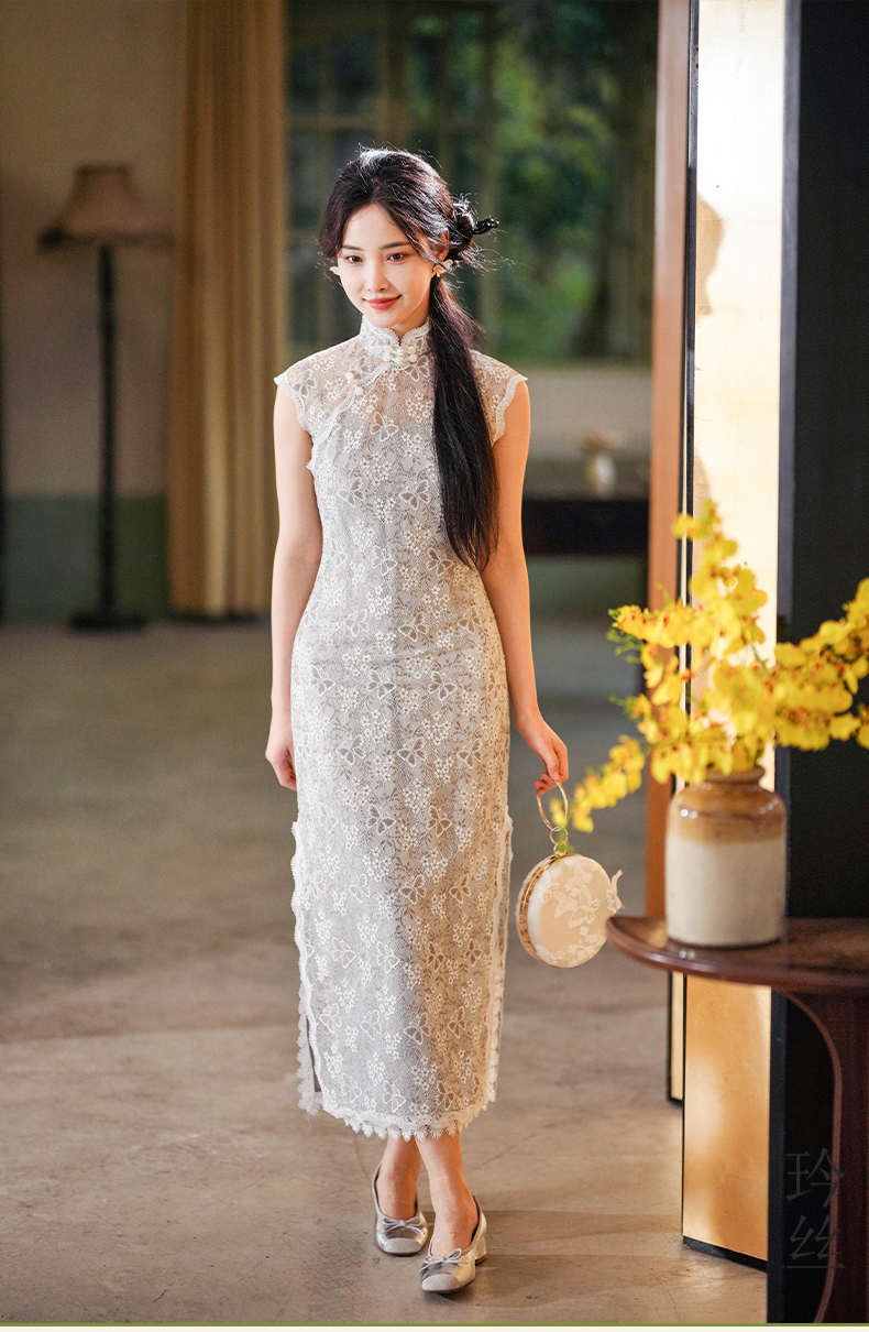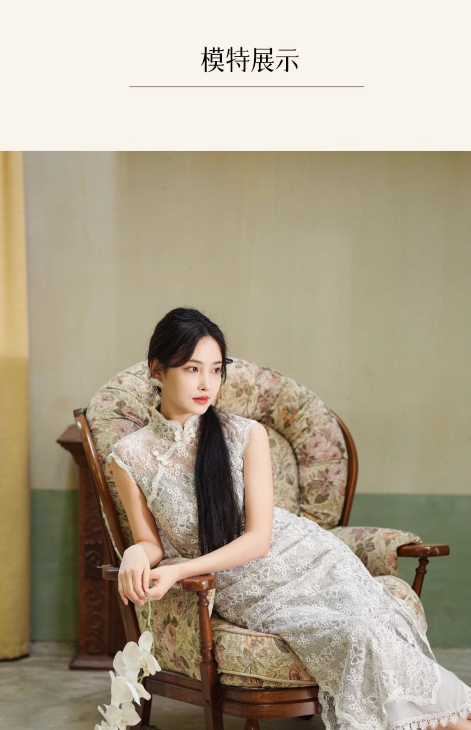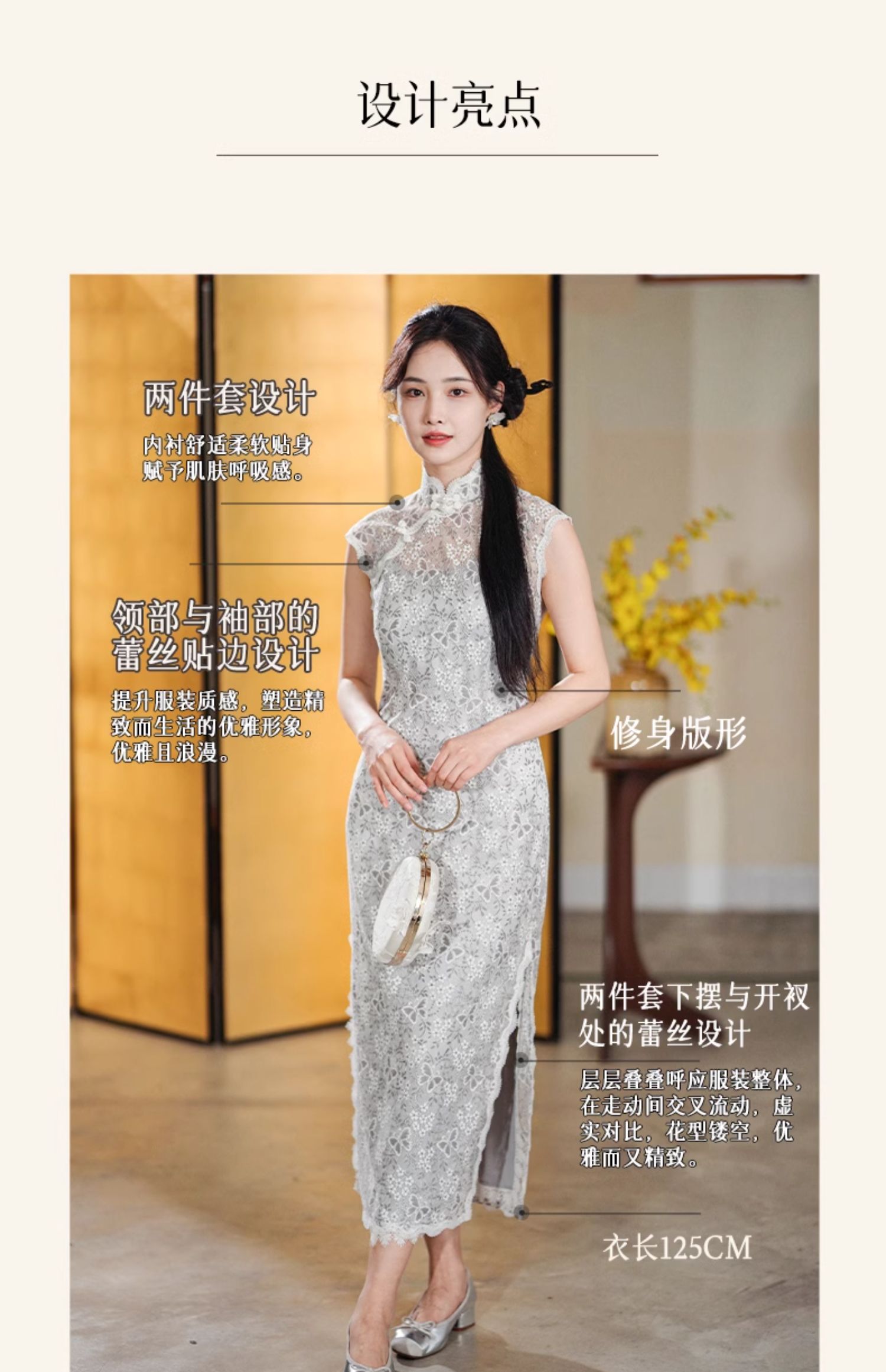 上海逸红颜玪丝2025年夏季新款蕾丝两件套修身新中式优雅文艺旗袍