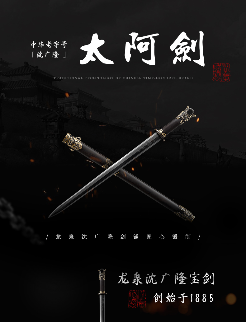 - 龙泉沈广隆剑舖创始于1885年(清光绪)位于浙江省龙泉市,是当地唯一一家“子承父业”一脉相承的中华老字号宝剑生产企业,是国家级非物质文化遗产龙泉宝剑项目保护单位,并以“天下第一剑”闻名于海内外....