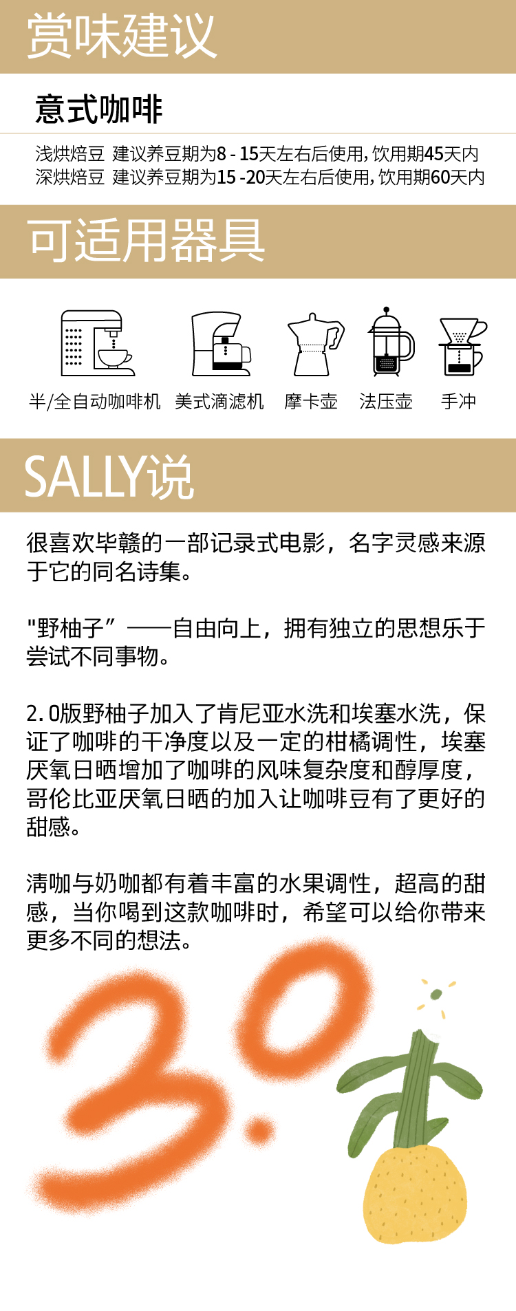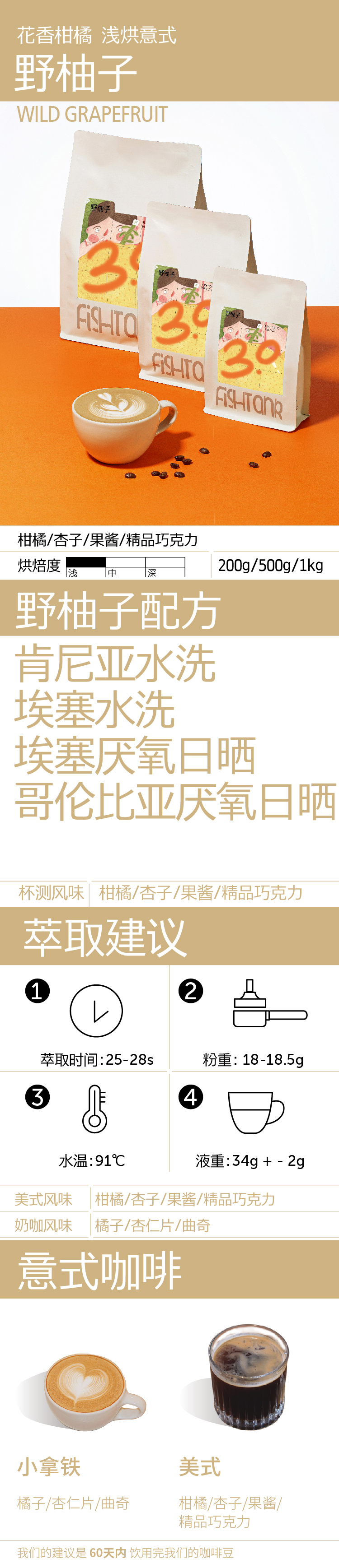野柚子3.0 浅烘意式拼配咖啡豆200g【任选2件8折】