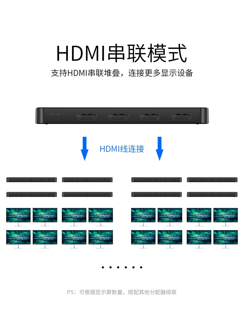 严选【HDMI2.0版 3进1出】hdmi分配器4K高清视频分配器HDMI扩展器1个