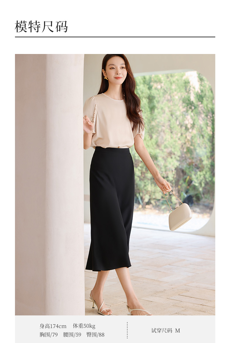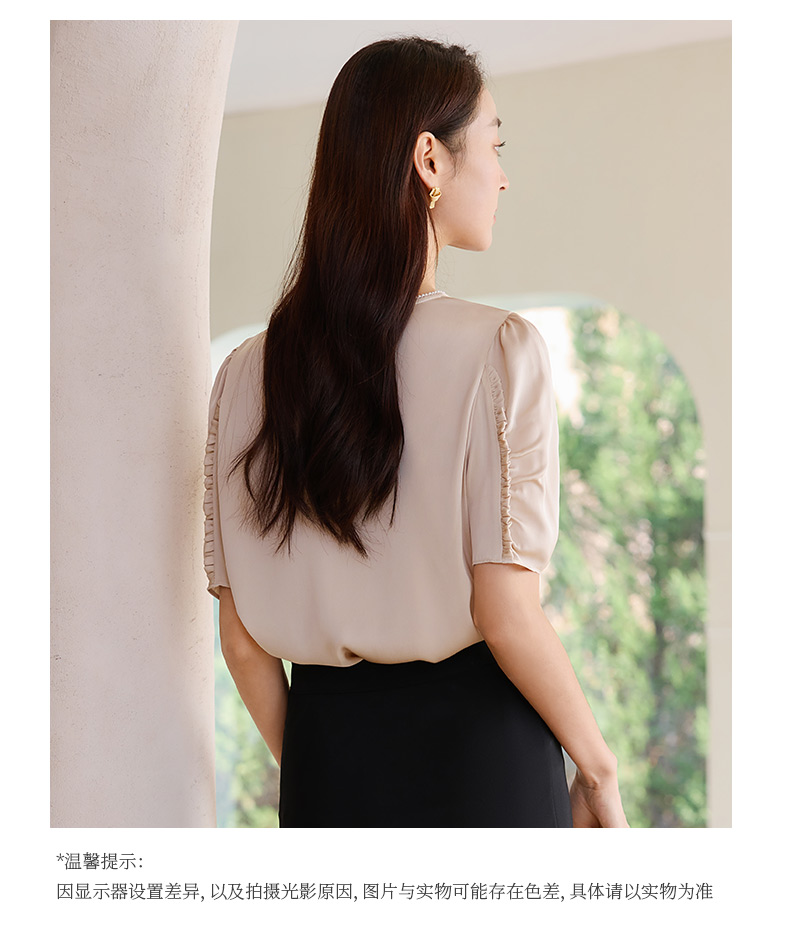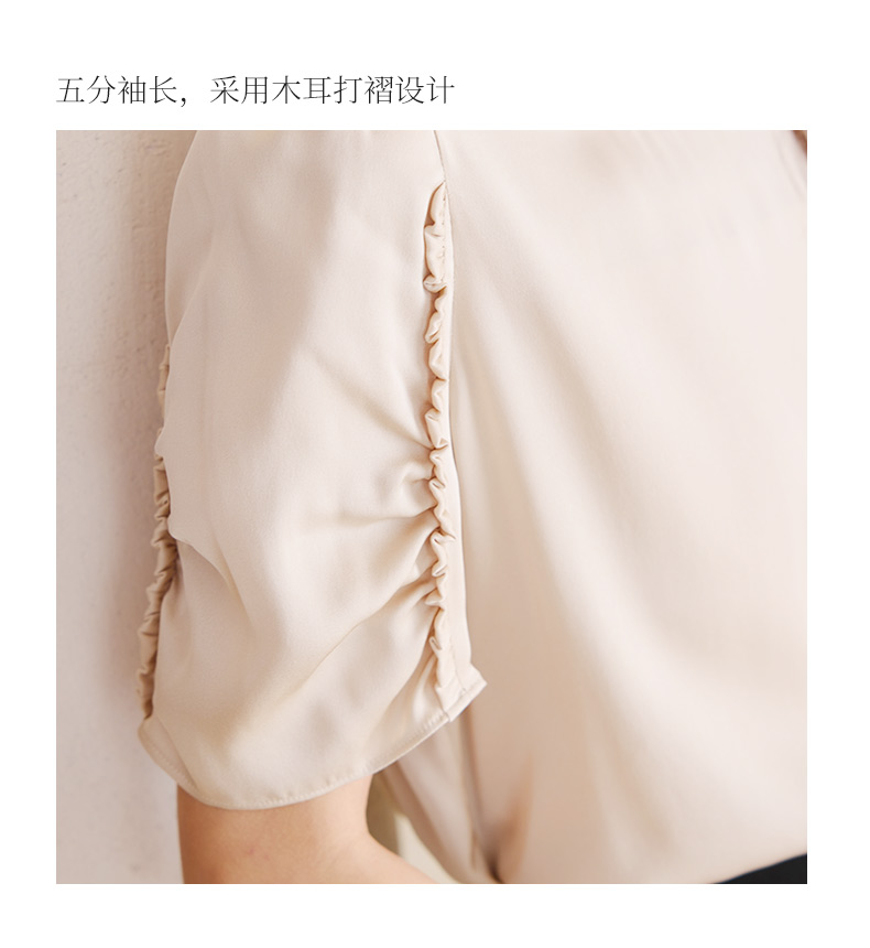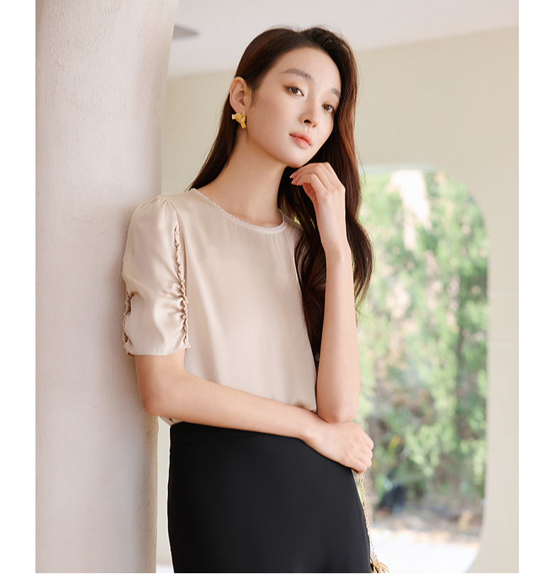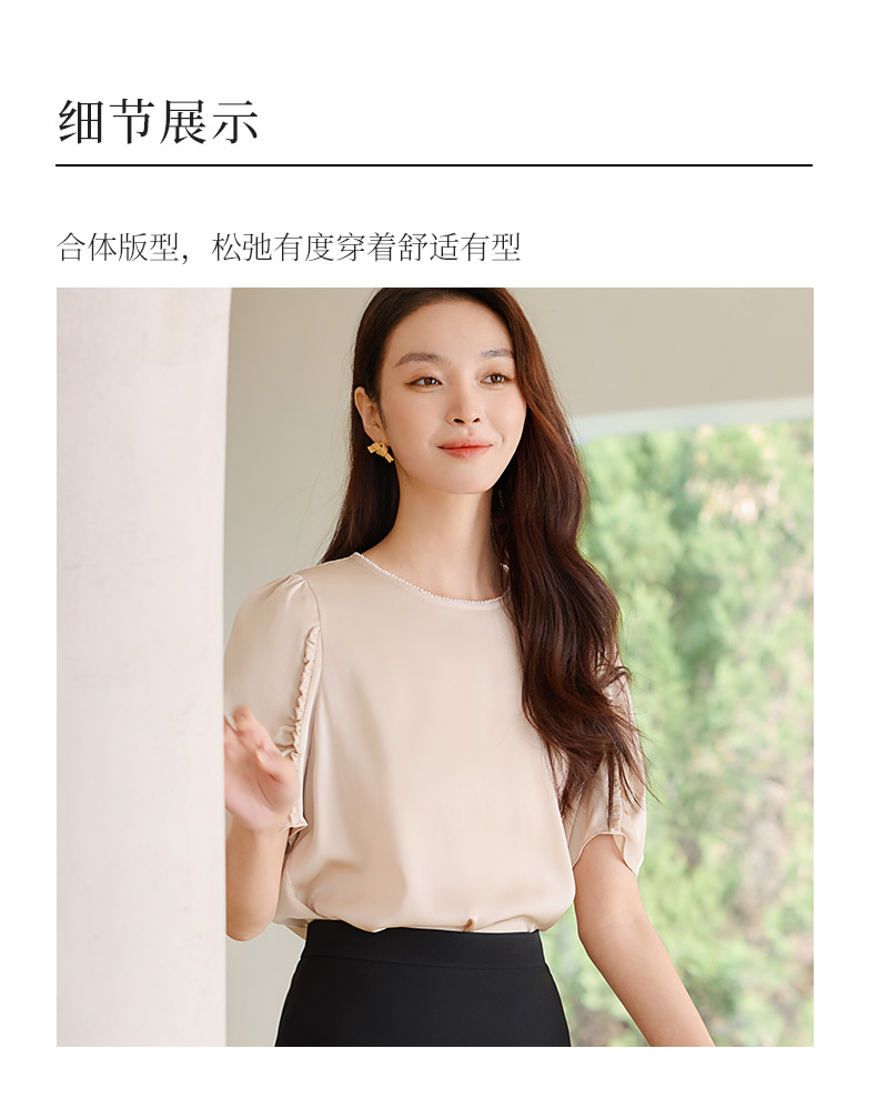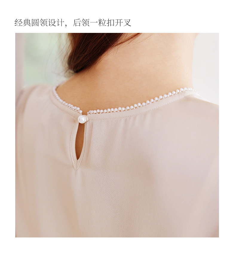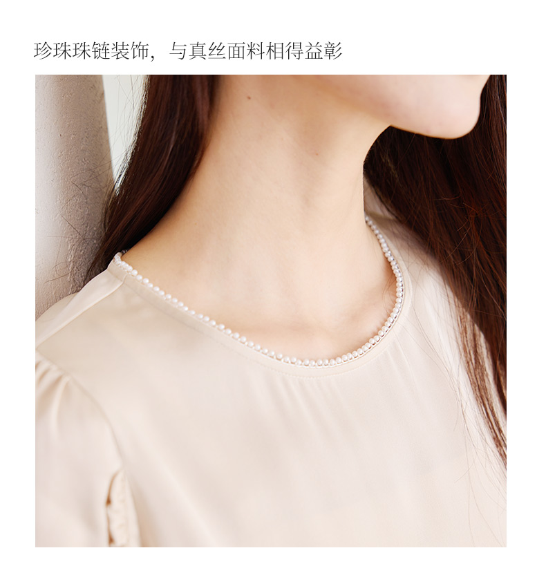 玳莎珠链圆领真丝衬衫女2025年夏季新款设计感优雅小众五分袖上衣 FB31104