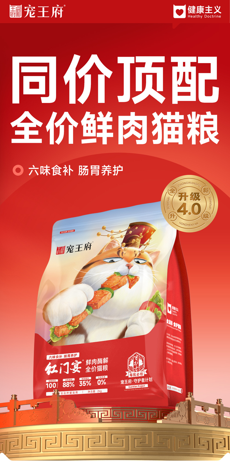 宠王府|红门宴4.0鲜肉零肉粉猫粮酶解养胃成幼猫通用