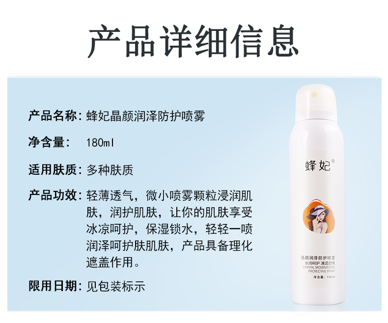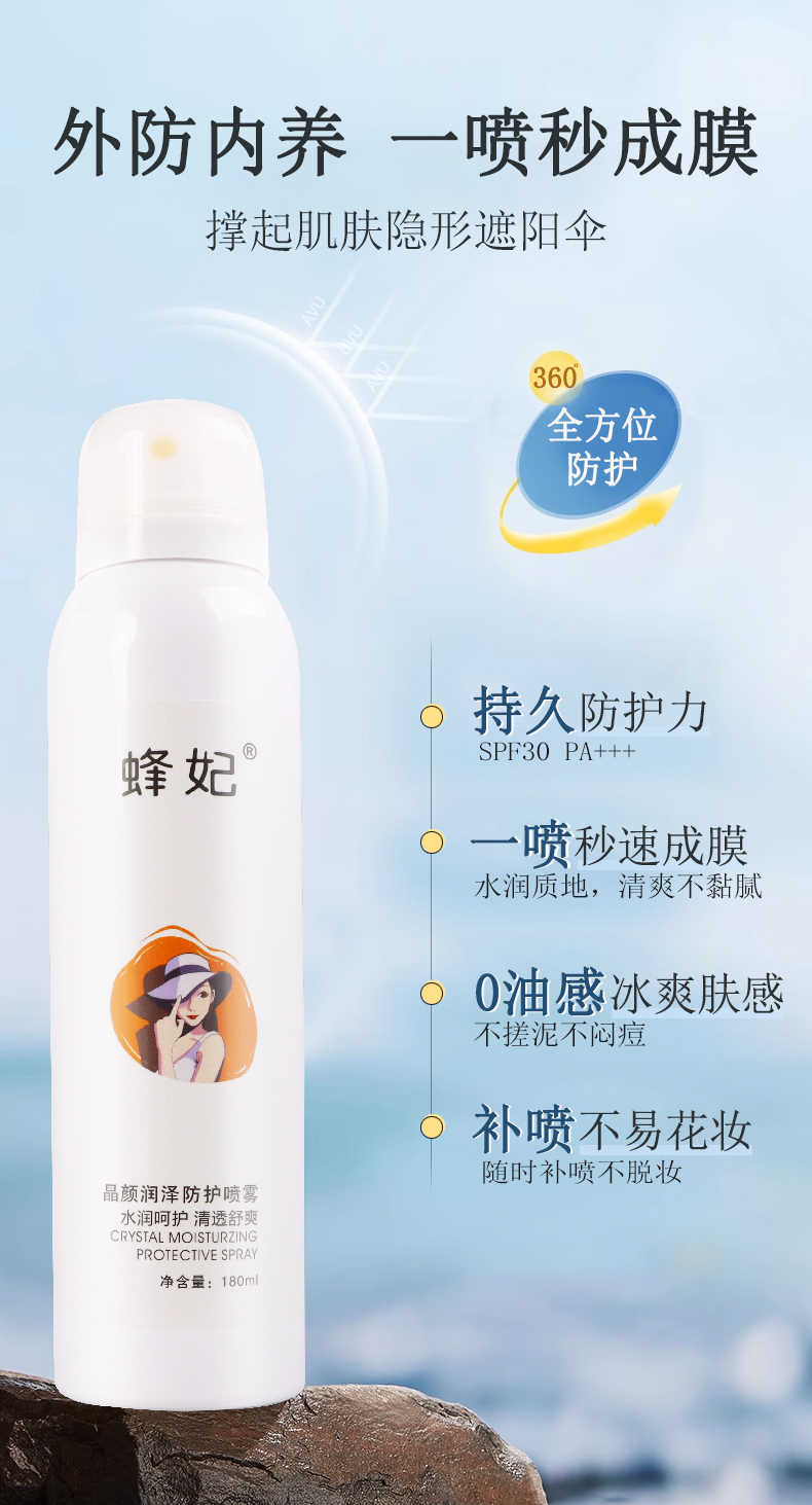 蜂妃晶颜润泽防护喷雾(SPF30 \ PA+++)日晒防护提亮肤色男女通用