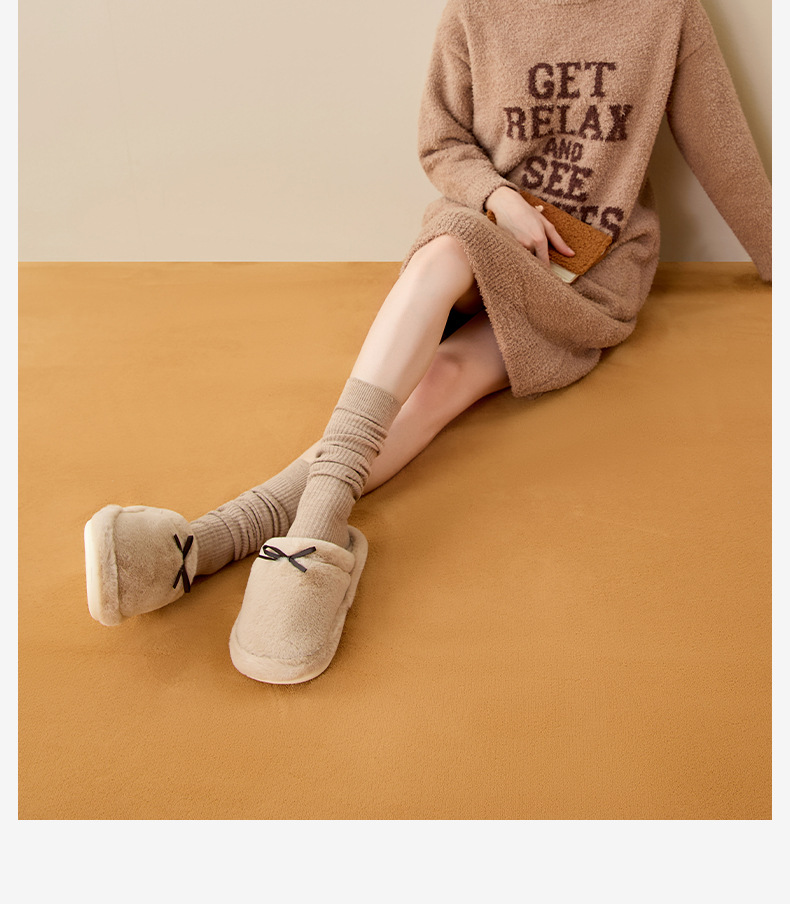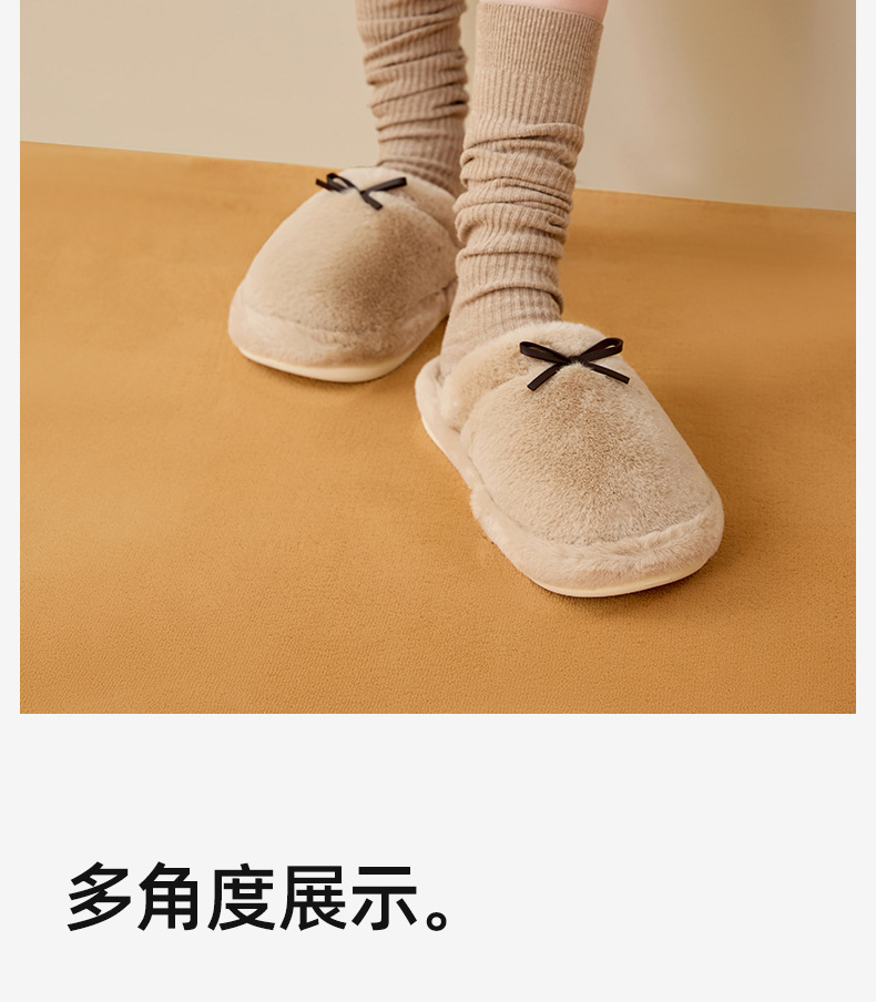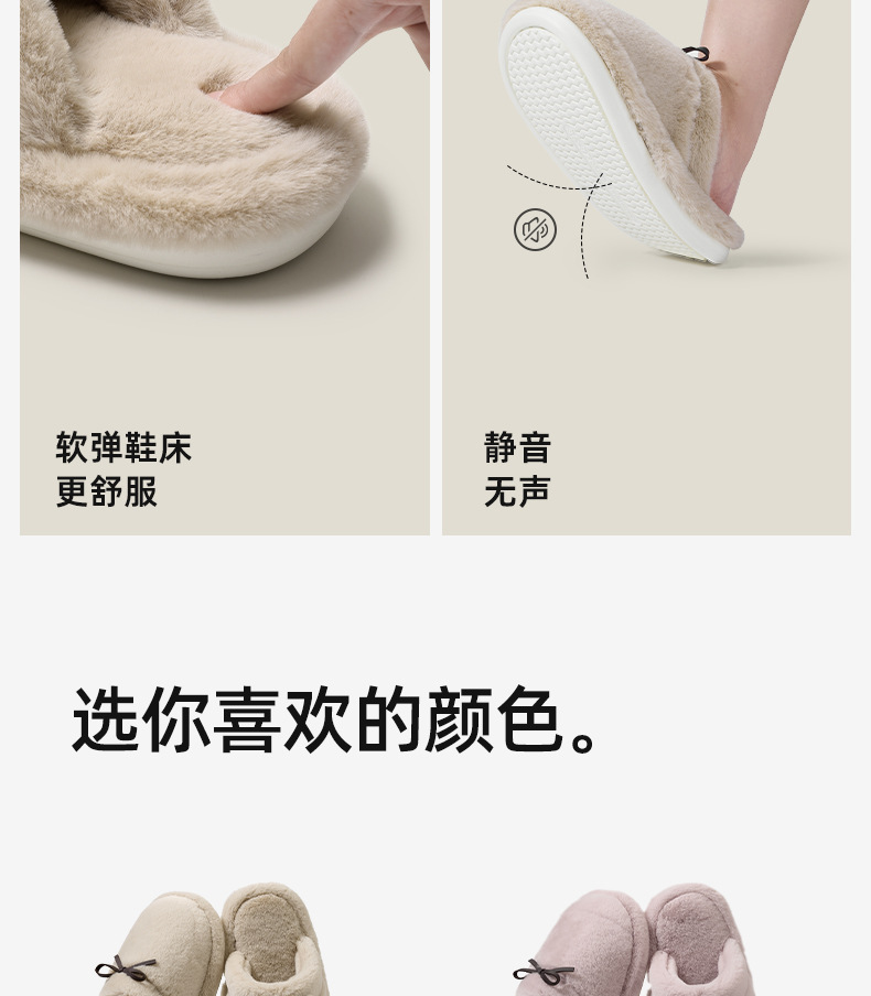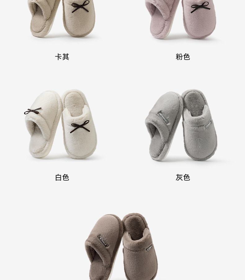 情侣款!2025秋冬蝴蝶结棉拖鞋女冬天保暖纯色室内居家加绒舒适百搭防滑毛绒拖鞋男