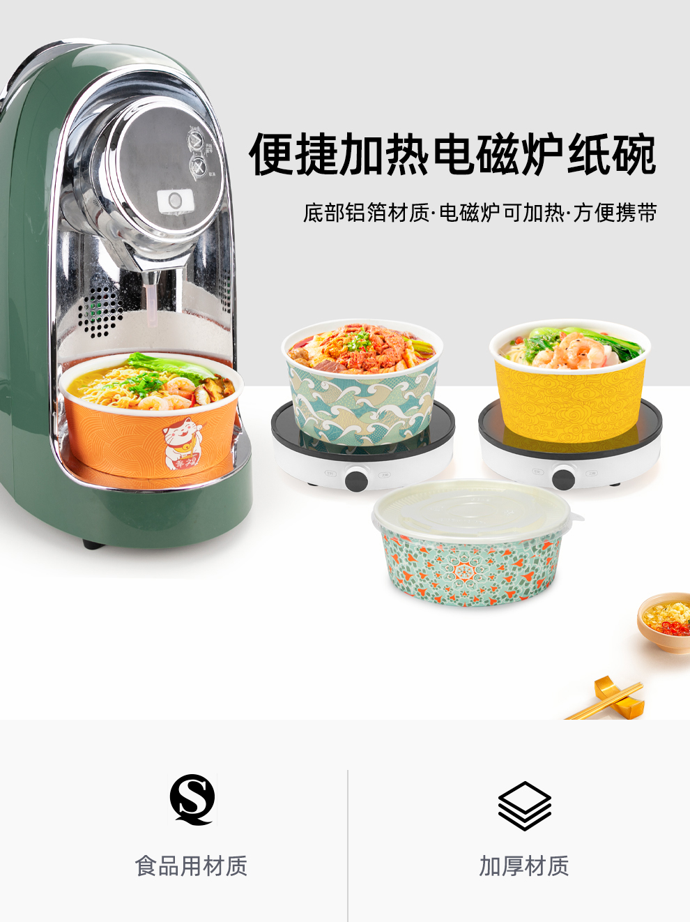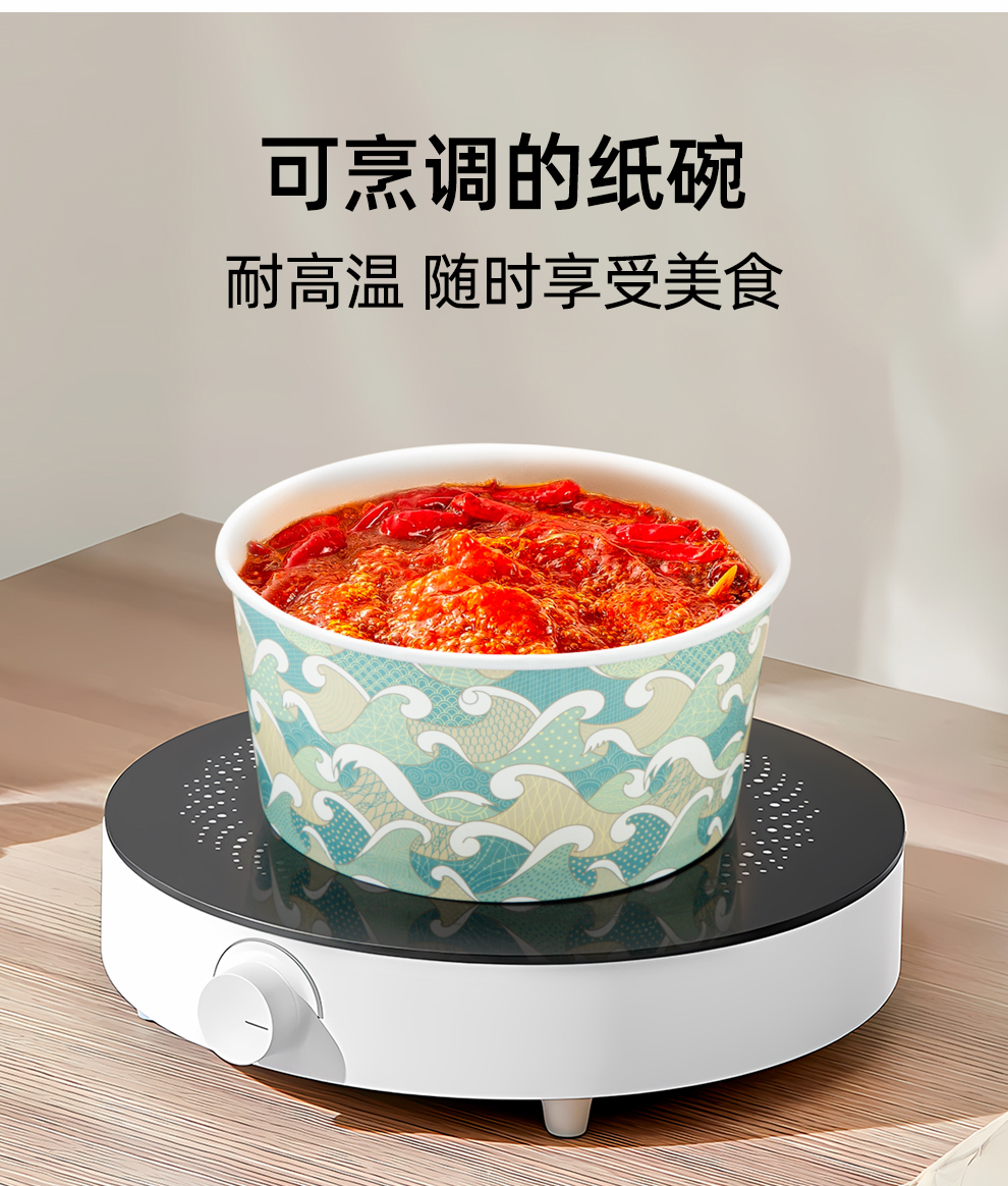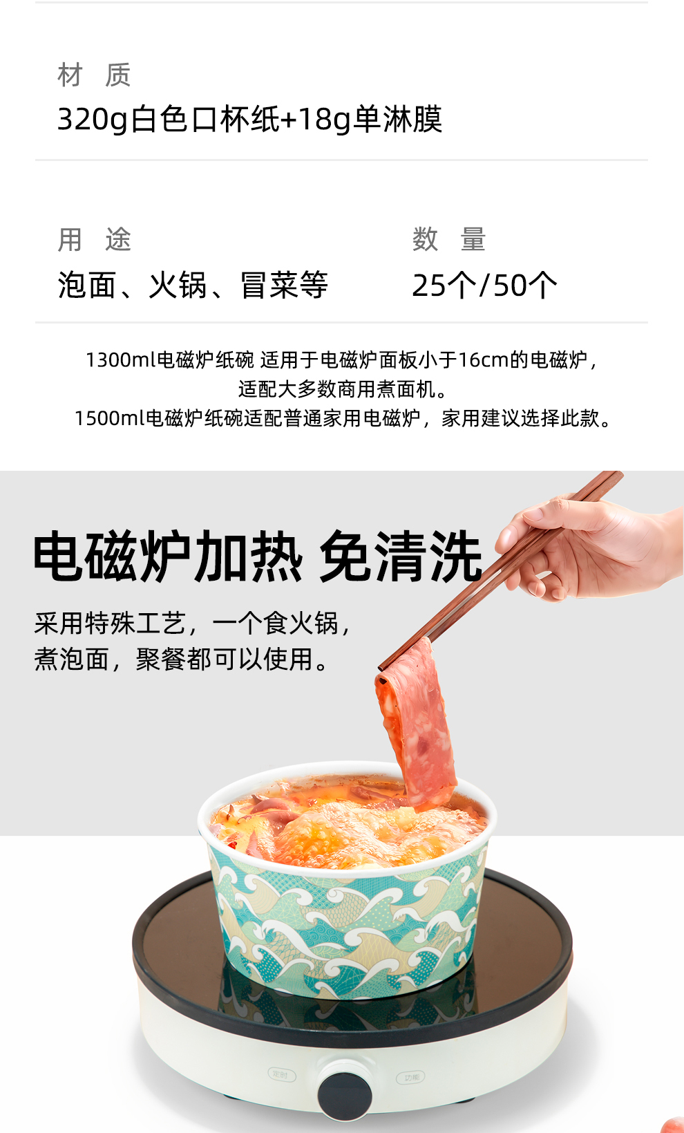 喇叭花1500ml电磁炉加热纸碗火锅自助泡面纸碗一人食智能煮餐煮面机网红25个