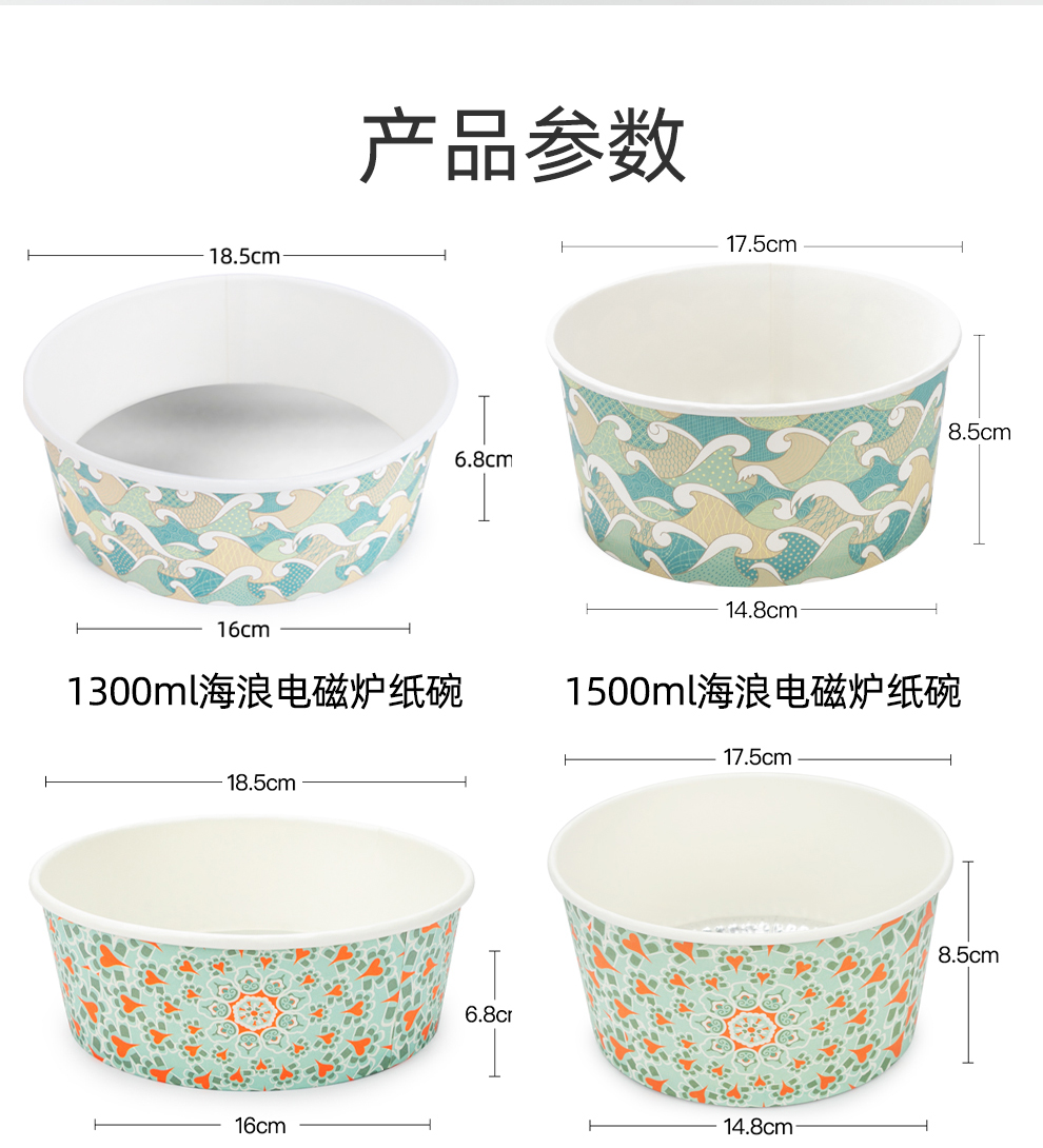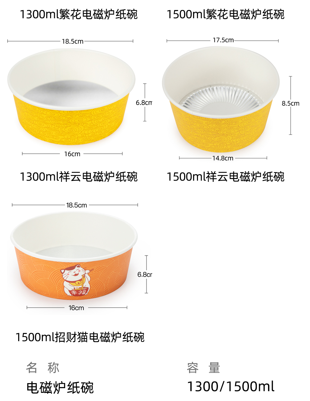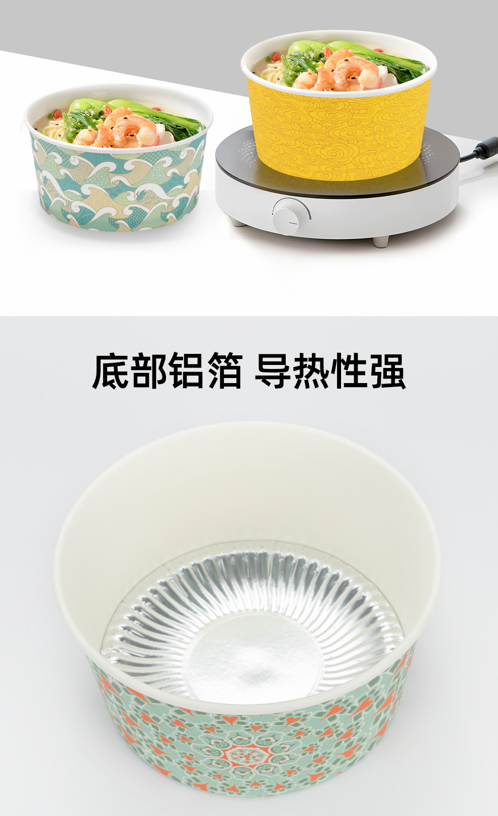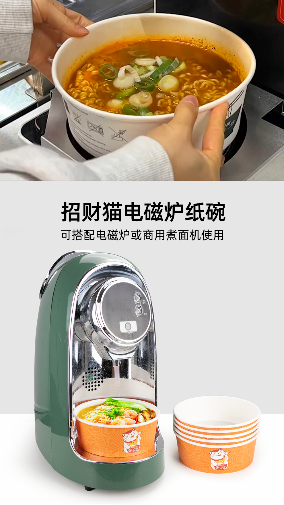 喇叭花1500ml电磁炉加热纸碗火锅自助泡面纸碗一人食智能煮餐煮面机网红25个