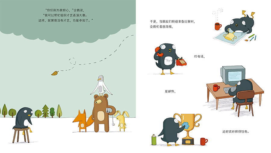 世界那么大,你也许渺小。舞台那么大,你也许平凡。可是,换个角度看世界,换个天地作舞台,你也许就是主角!《大显身手的笨企鹅》,让每个孩子找到他自己,让每个孩子找到温暖和自信!