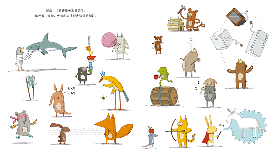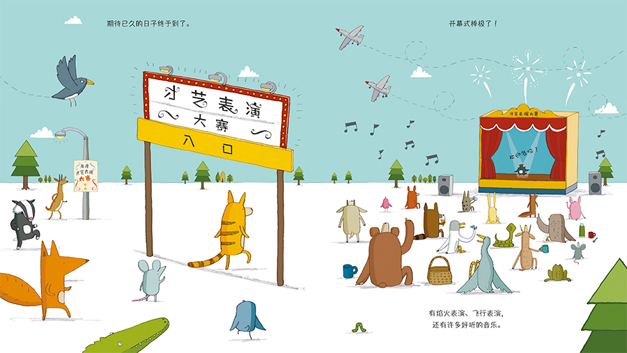 年度才艺表演大赛就要开始啦,大家都在使劲儿练习。企鹅也很想参加,可他实在想不出自己有什么特殊的才艺。他尝试过玩电器杂耍,变魔术,甚到打嗝背字母表,但是情况真的有些糟……