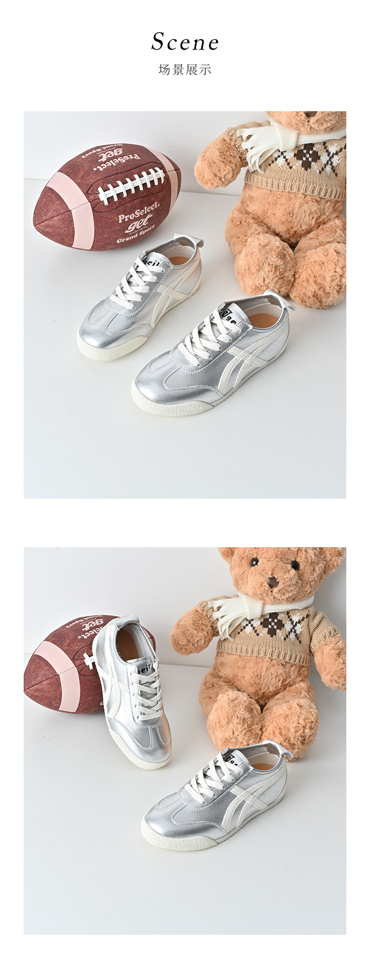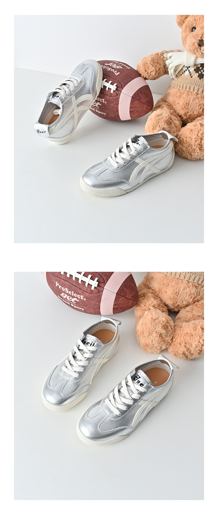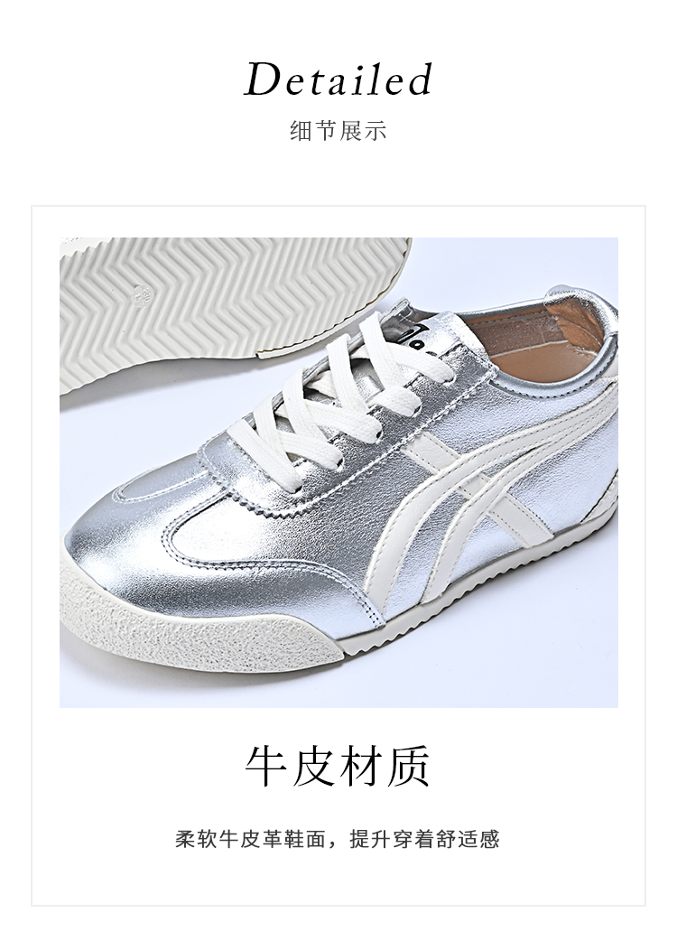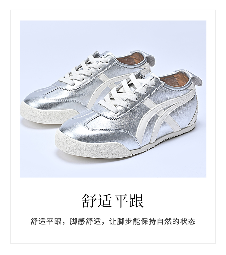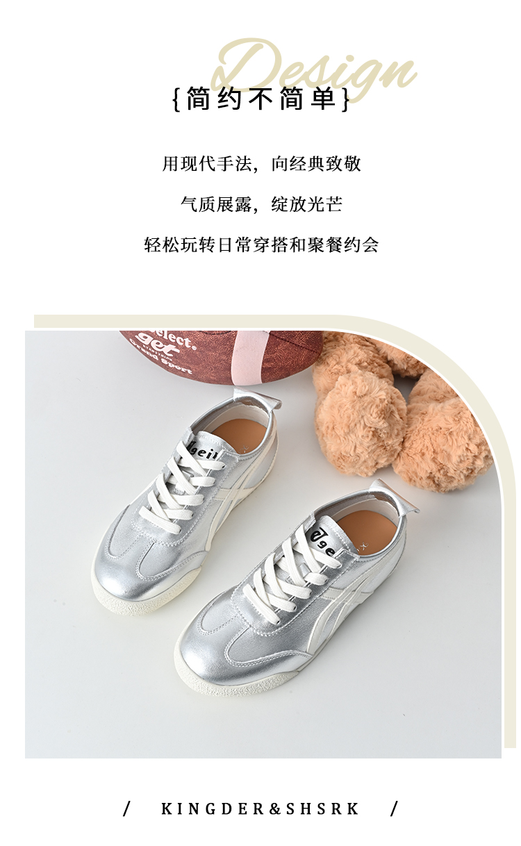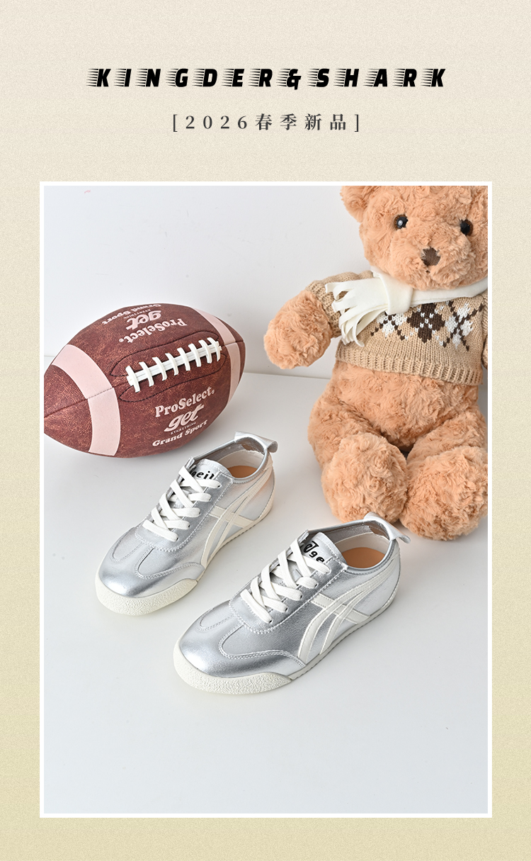 经典鲨2026年春季专柜新款牛皮革银色系带平底休闲德训鞋女KW182-617021