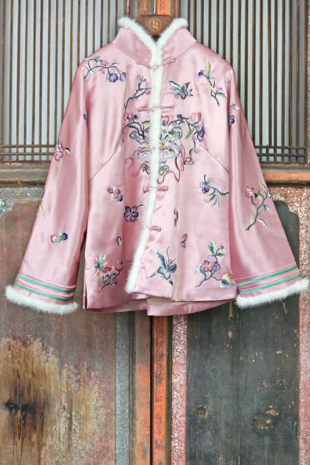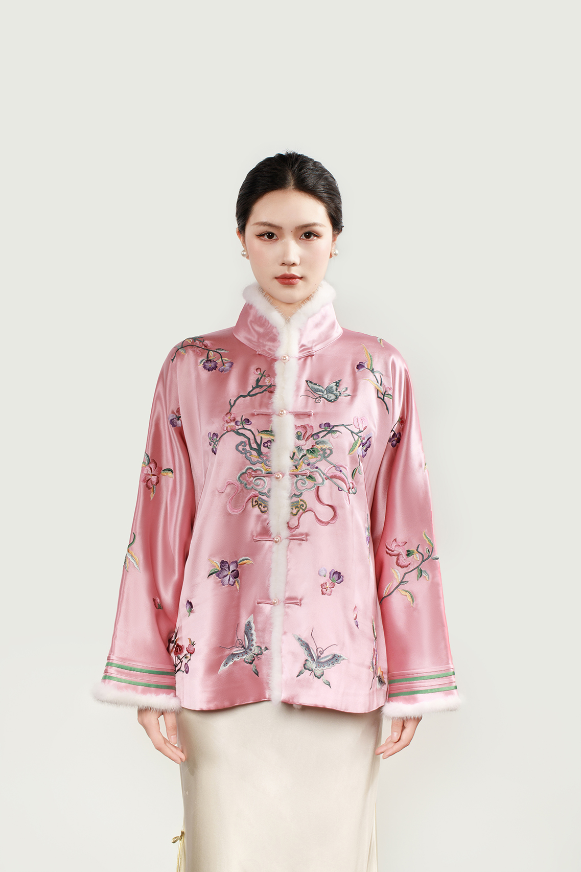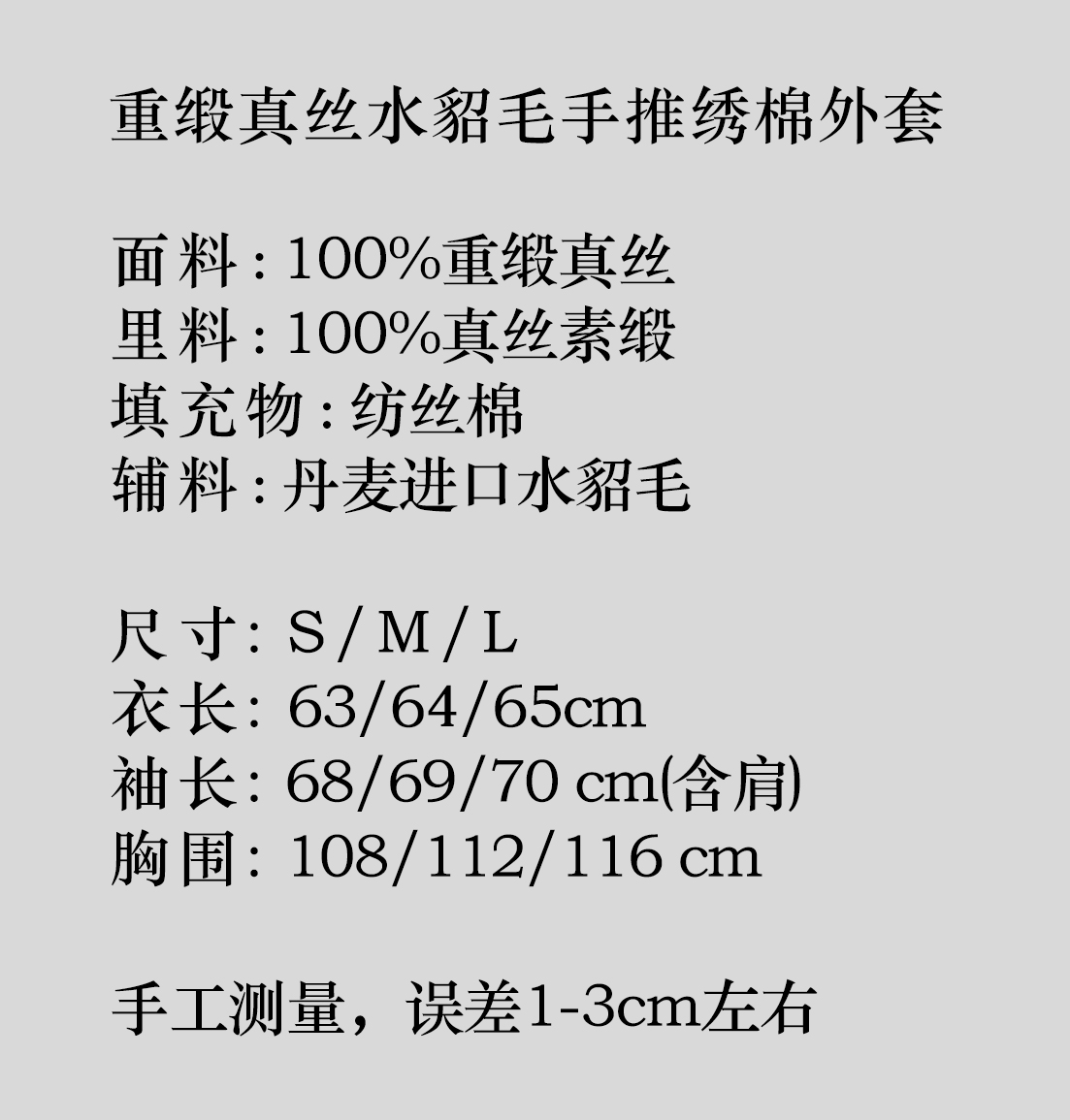 盛唐牡丹大师系列 | 重缎真丝水貂毛手推绣棉外套(盛唐牡丹与非遗传承人王小潇联名系列)