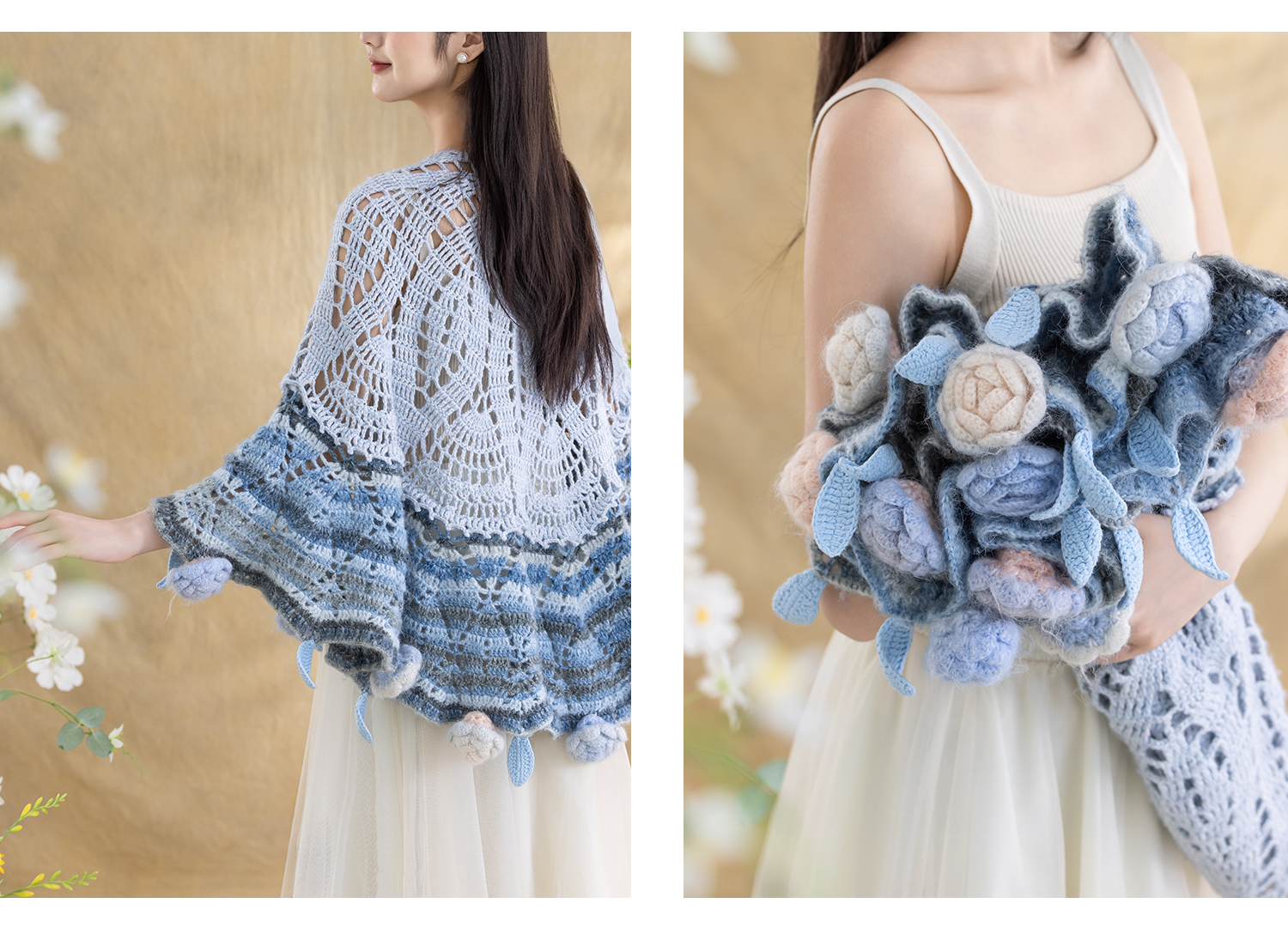 苏苏姐家心意花束披肩手工diy钩针编织毛线团材料包
