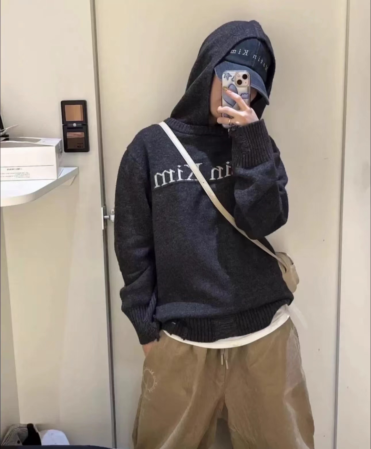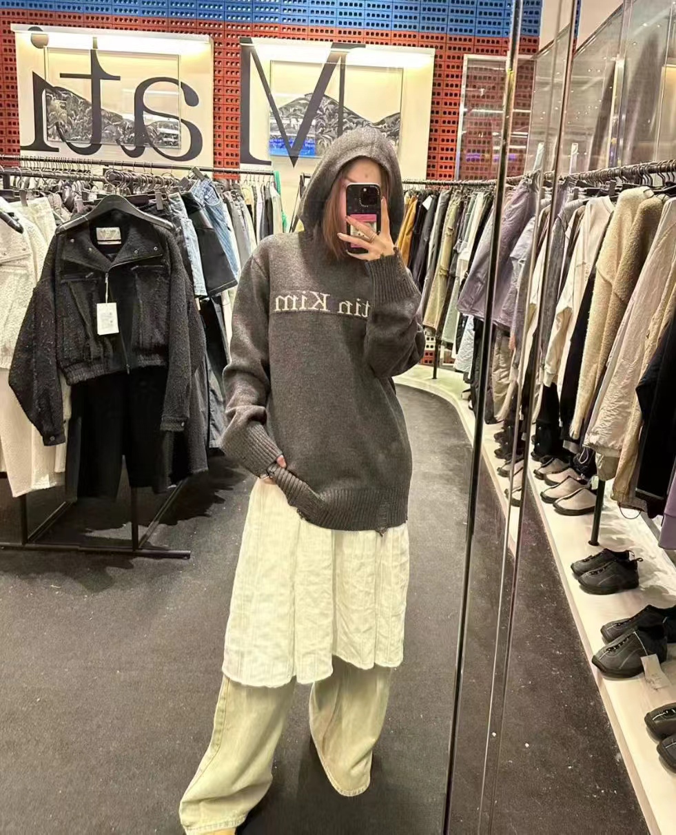 秋冬新款针织提花字母重工破坏下摆连帽假两件毛衣 ,优选羊毛混纺针织棉线,上手尽显厚实,双面针织进口+提花工艺,7针专用进口横机,重工破坏工艺,无论是下摆、袖口一致不规则手工破坏收口设计,都做了包边走线,!进口机wan美针织打底logo图案设计,Zp一致厚底质感,图案清晰自然,紧实有型,久穿不易变形!潮流gao级感十足,上身宽松百搭 不挑身材 轻松get韩系慵懒风!冬日保暖bi备好货!自留强烈推荐~