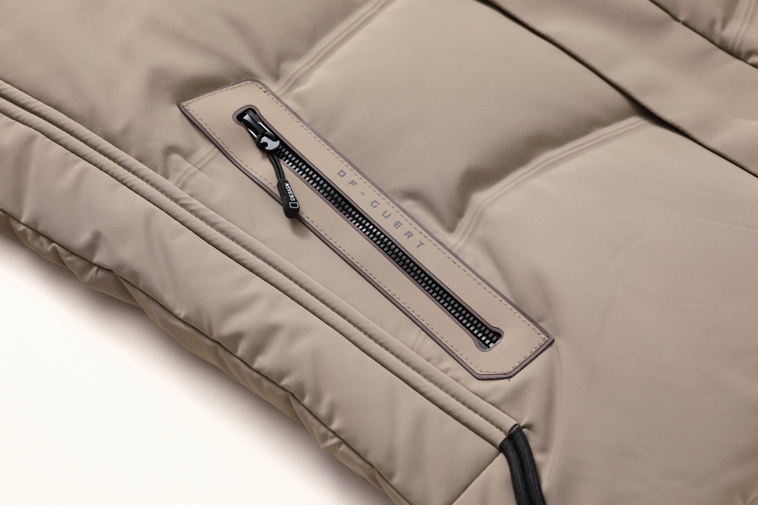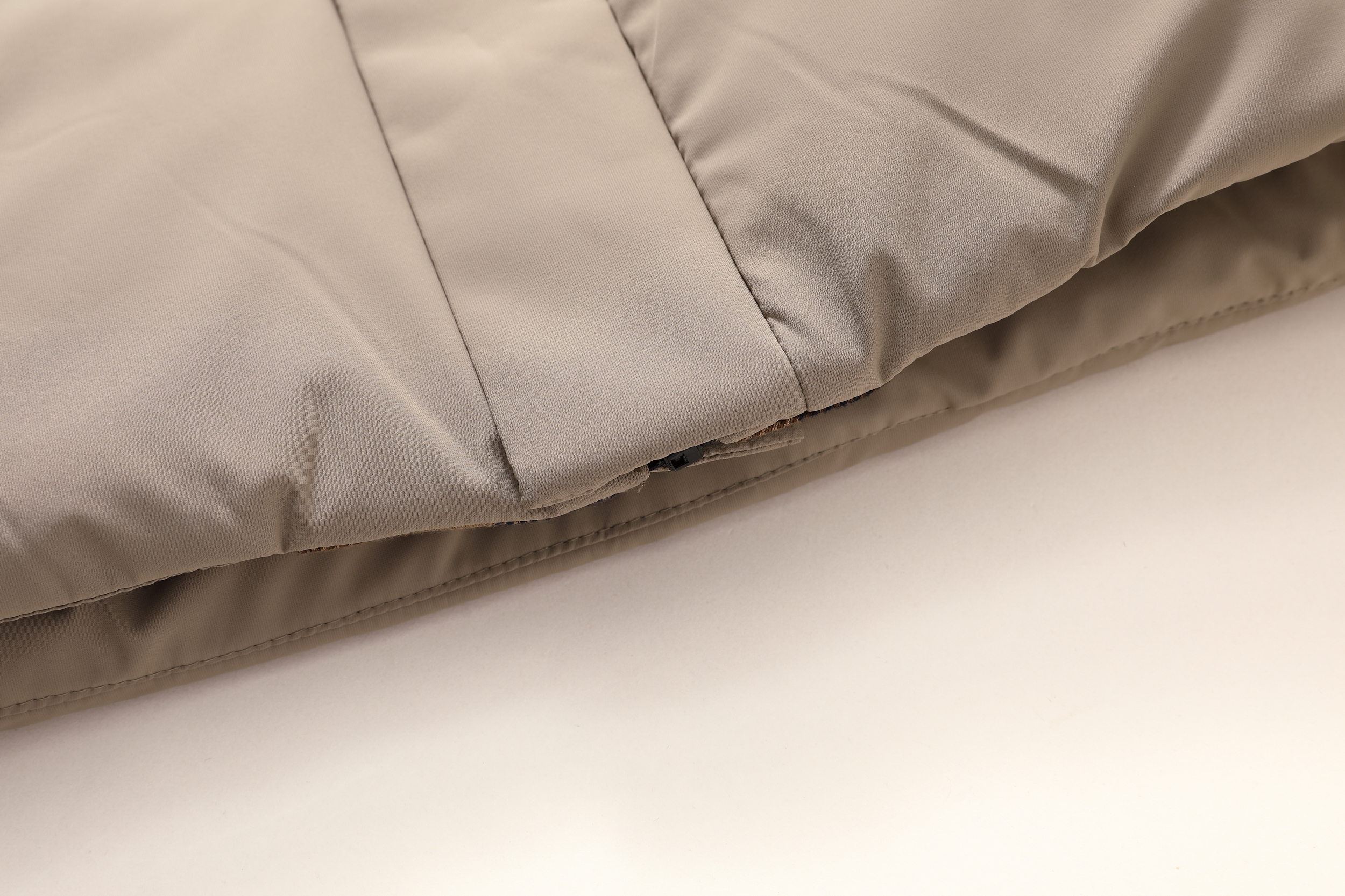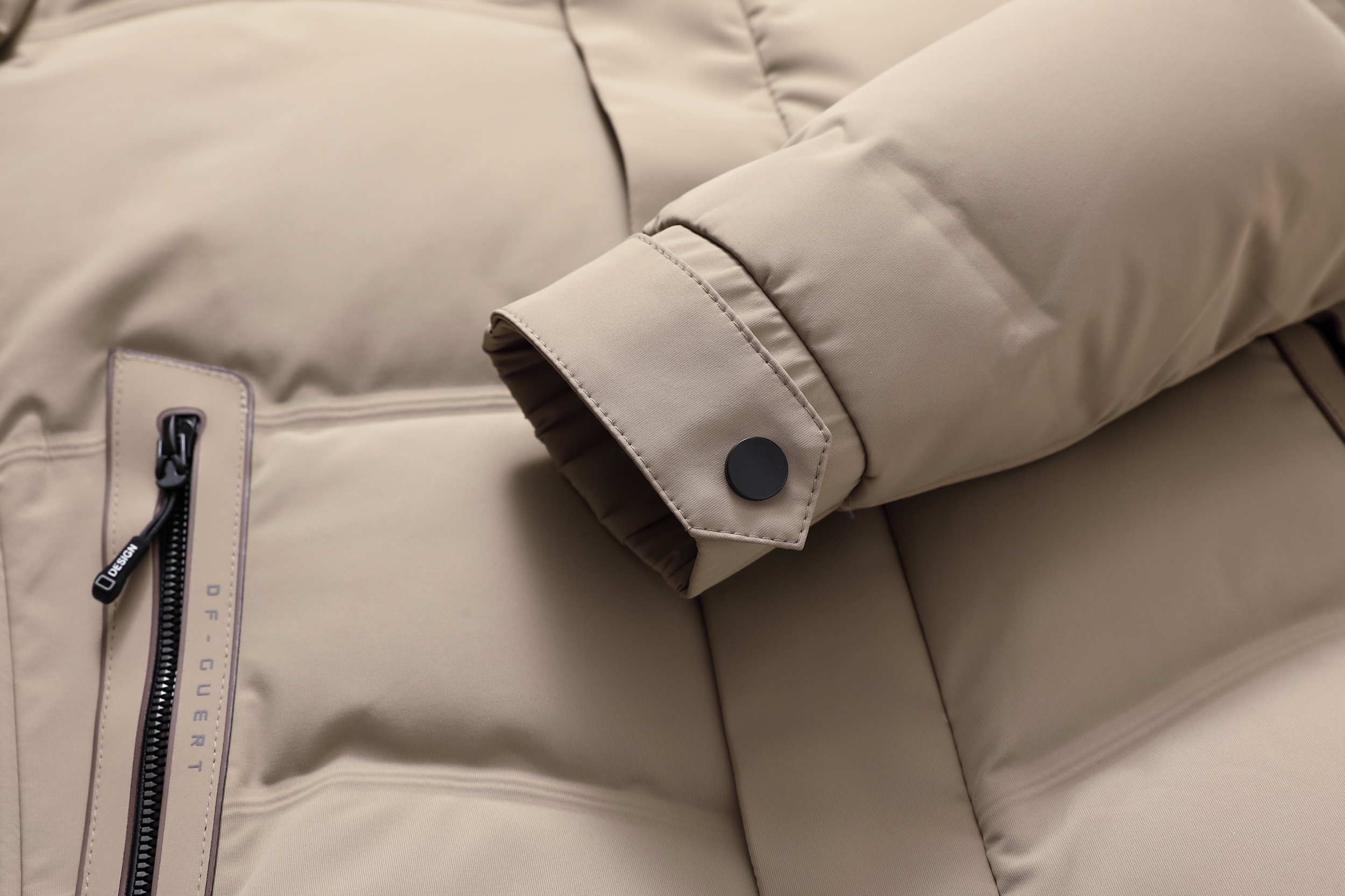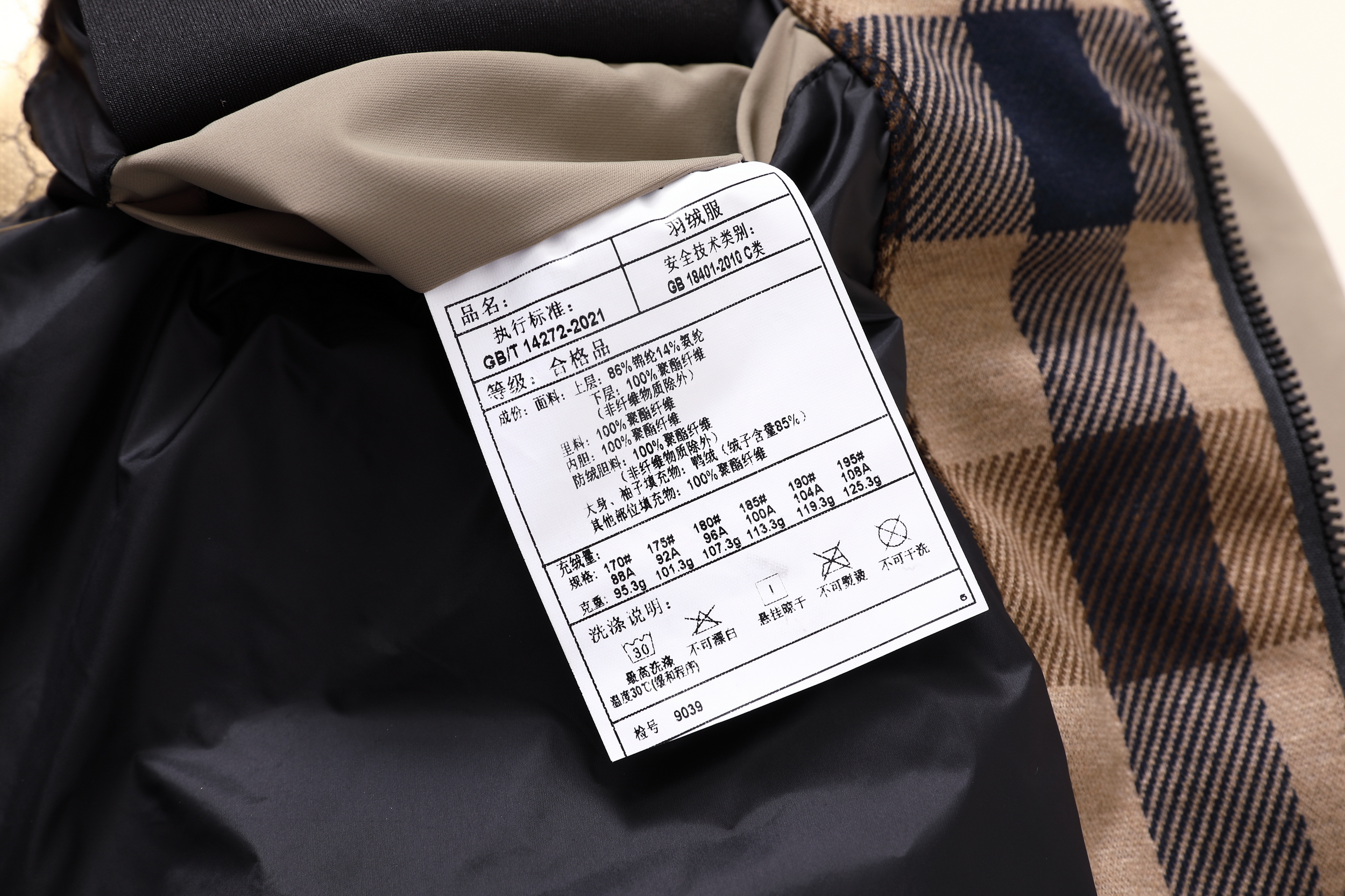 成分:面料:上层:86%锦纶14%氨纶 下层:100%聚酯纤维(非纤维物质除外) 里料:100%聚酯纤维 内胆:100%聚酯纤维 防绒胆料:100%聚酯纤维(非纤维物质除外)大身、袖子填充物:鸭绒 绒子含量 85% 其他部位填充物:100%聚酯纤维 充绒量:见洗唛
