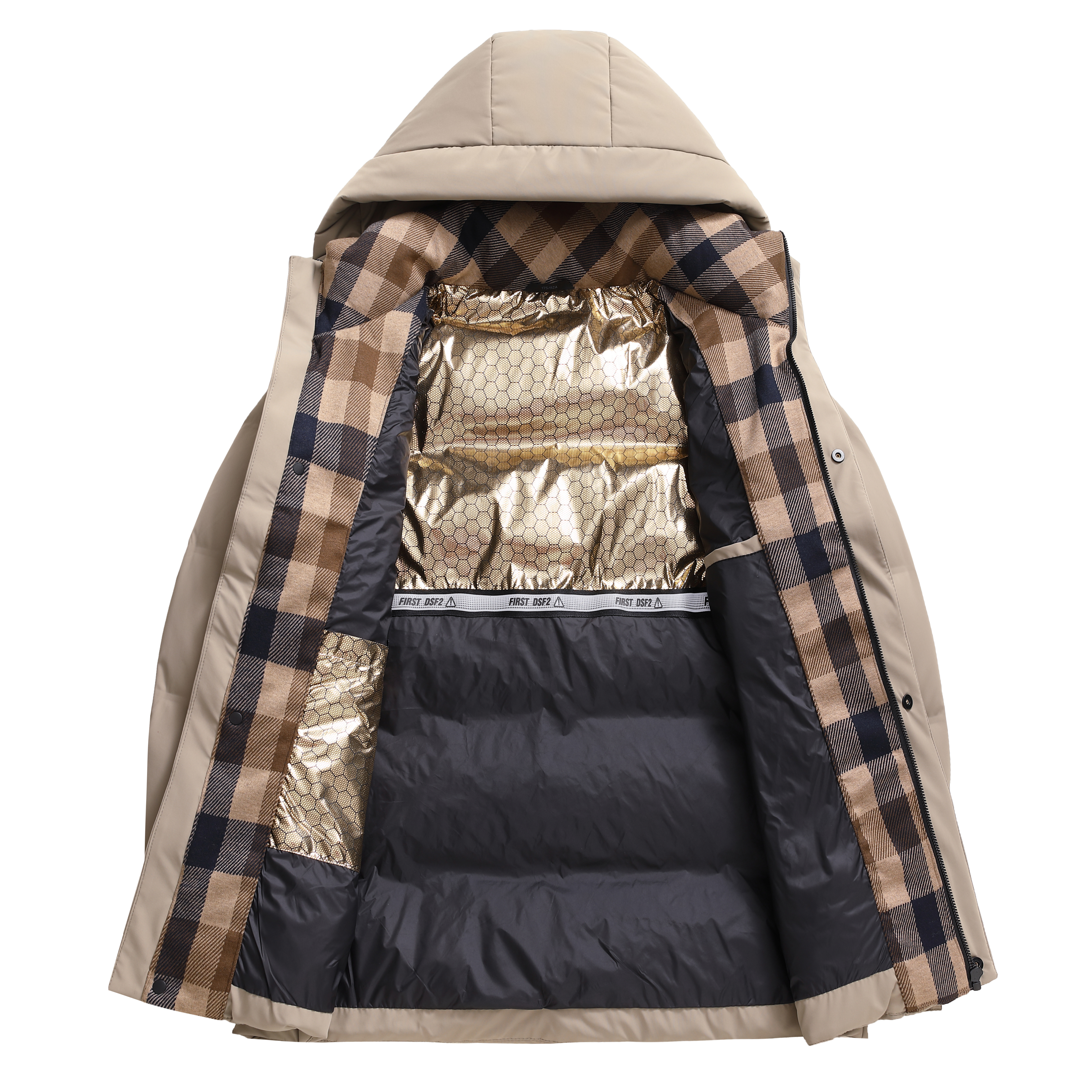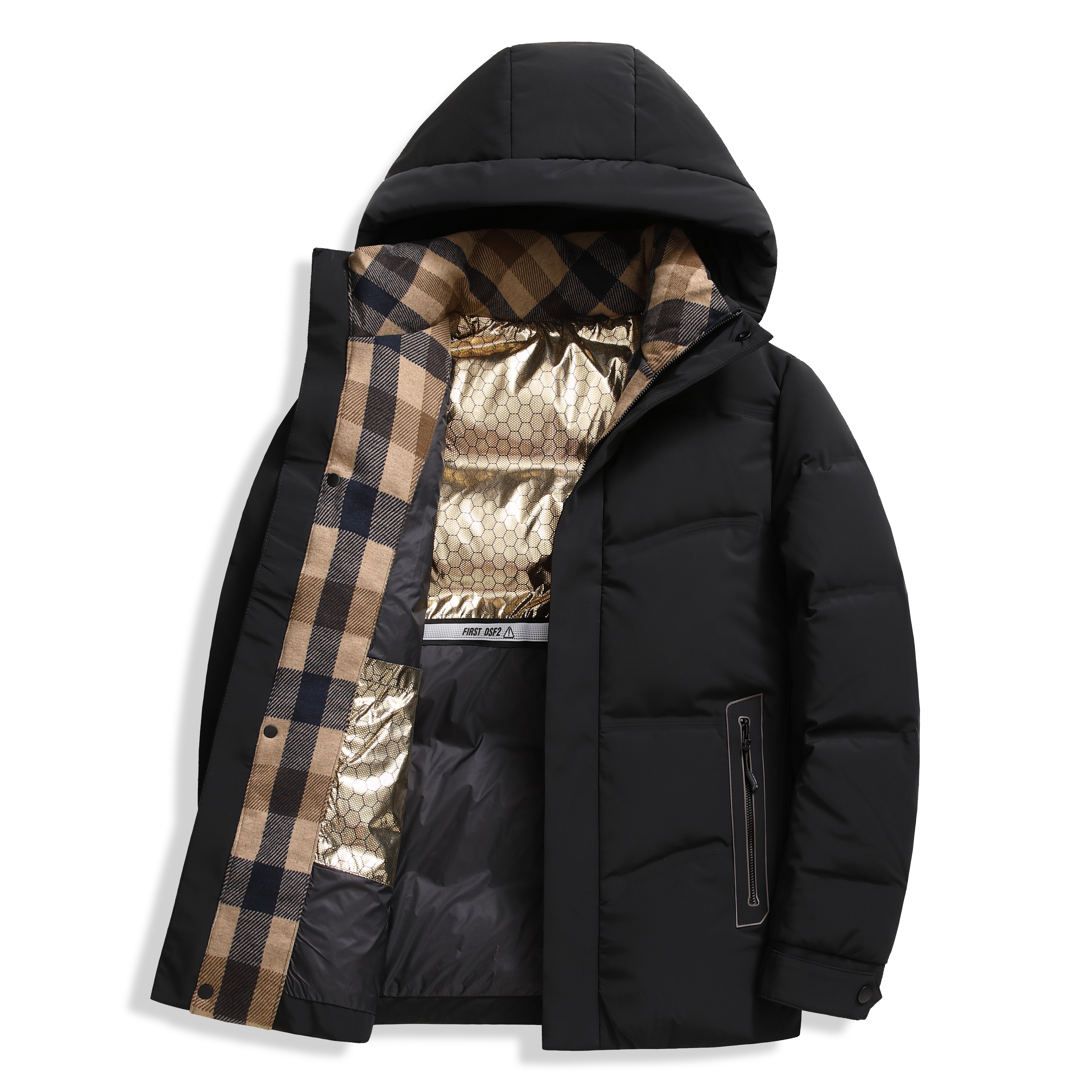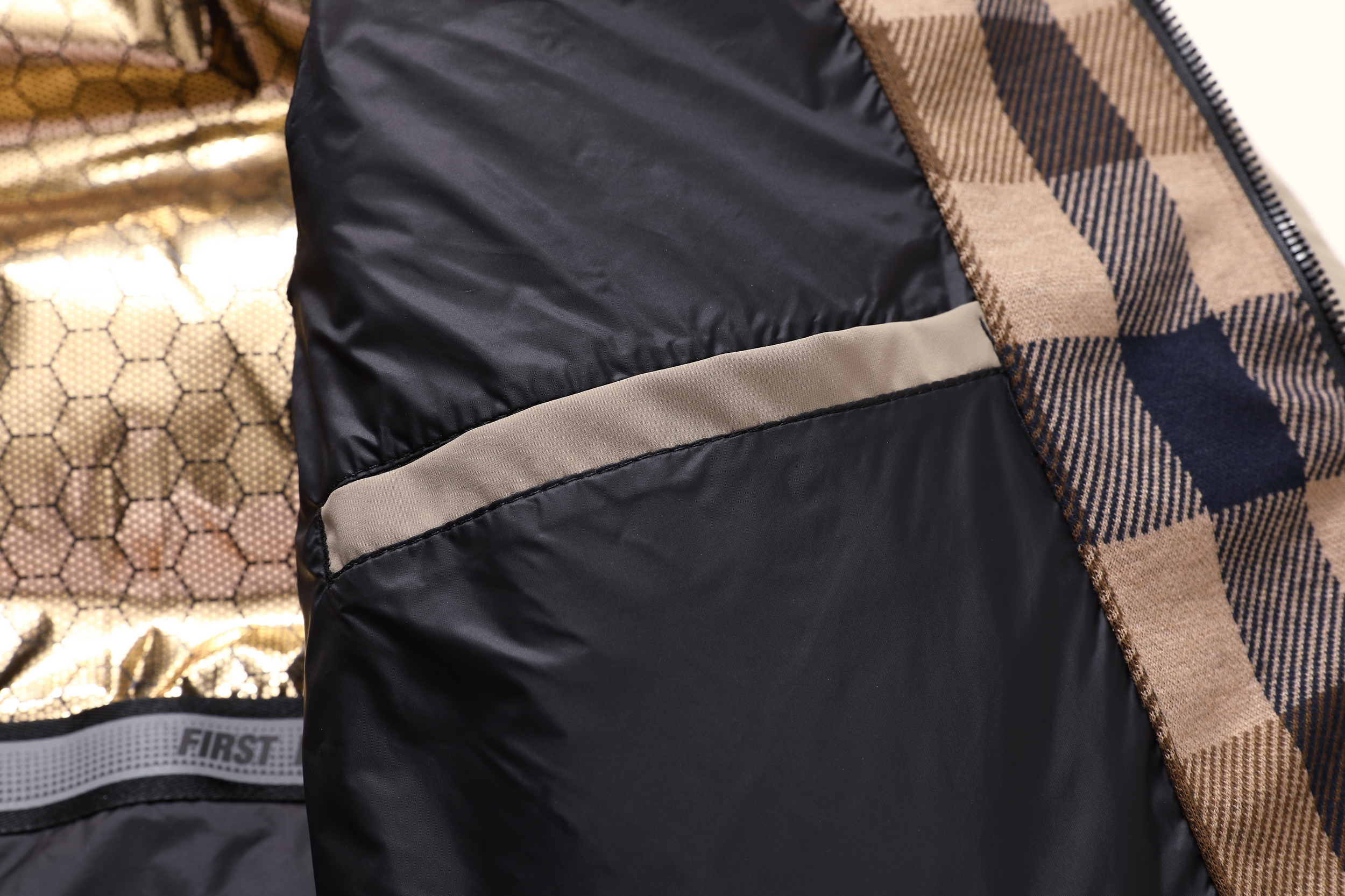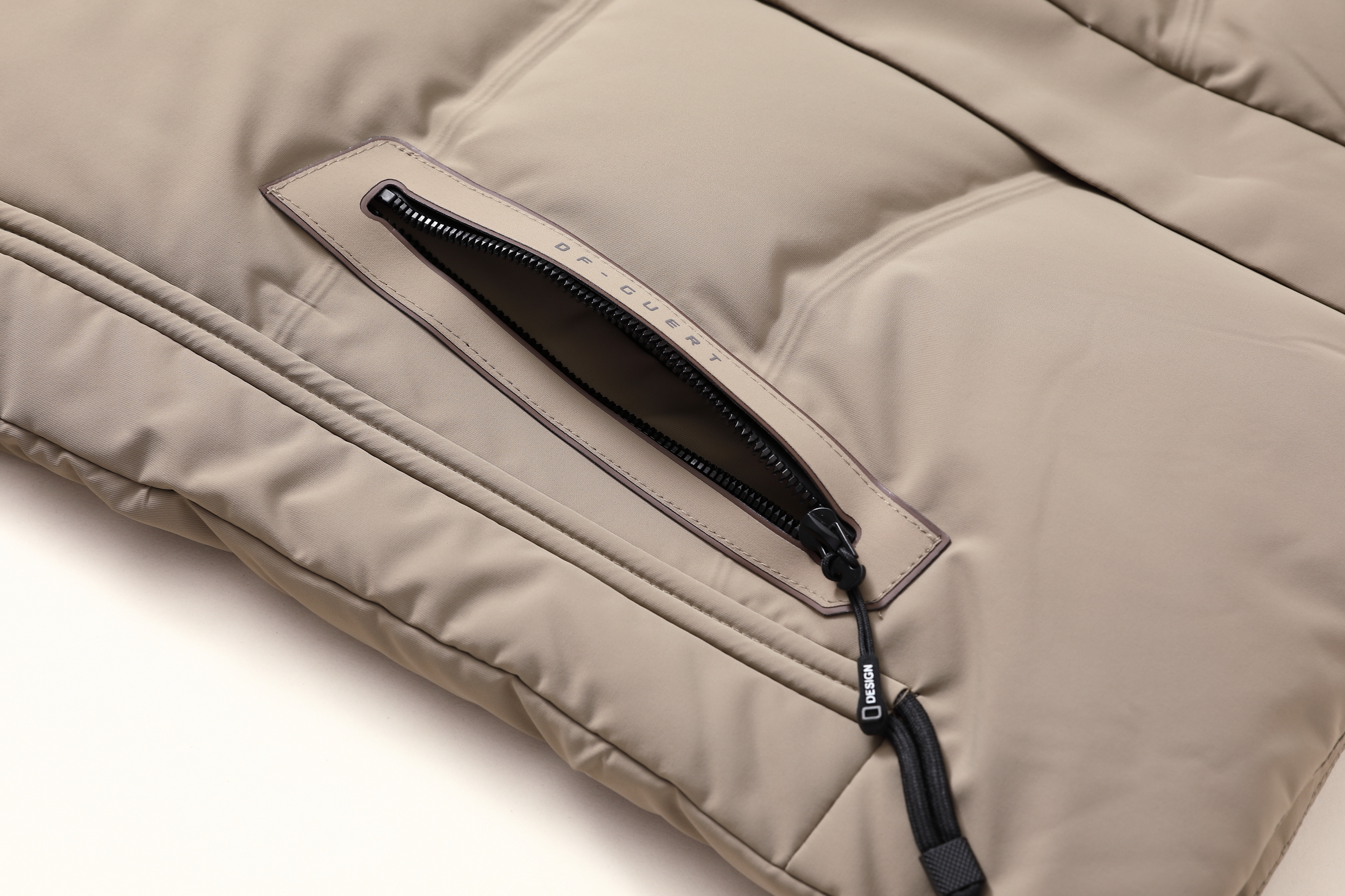 成分:面料:上层:86%锦纶14%氨纶 下层:100%聚酯纤维(非纤维物质除外) 里料:100%聚酯纤维 内胆:100%聚酯纤维 防绒胆料:100%聚酯纤维(非纤维物质除外)大身、袖子填充物:鸭绒 绒子含量 85% 其他部位填充物:100%聚酯纤维 充绒量:见洗唛