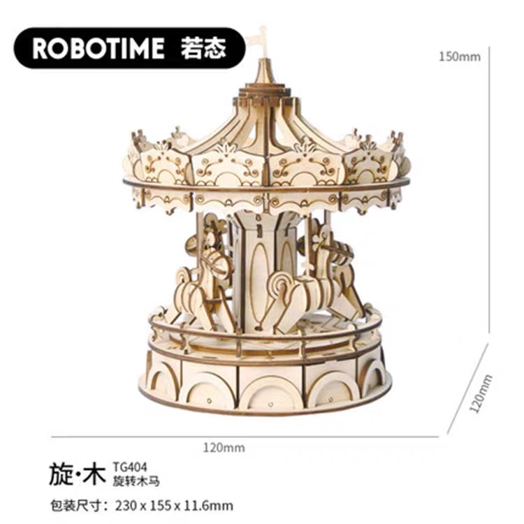 若来(RoLife)若态·旋转木马 木质diy手工立体拼图玩具桌面摆件cj