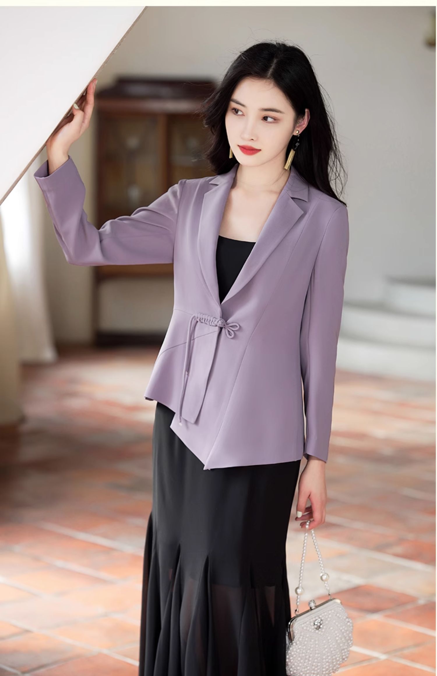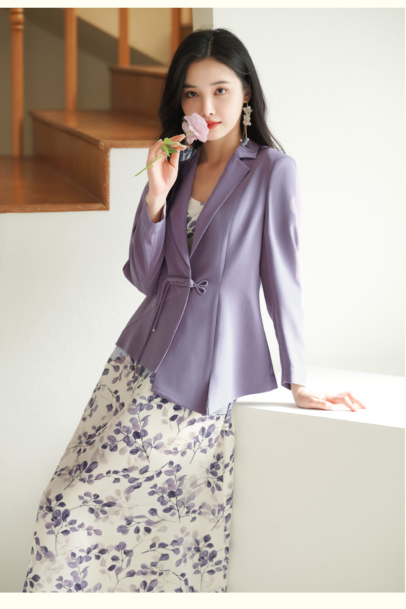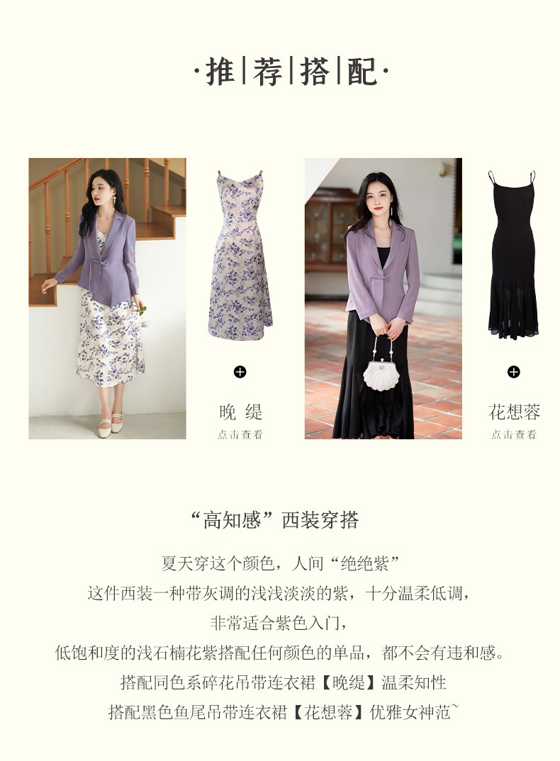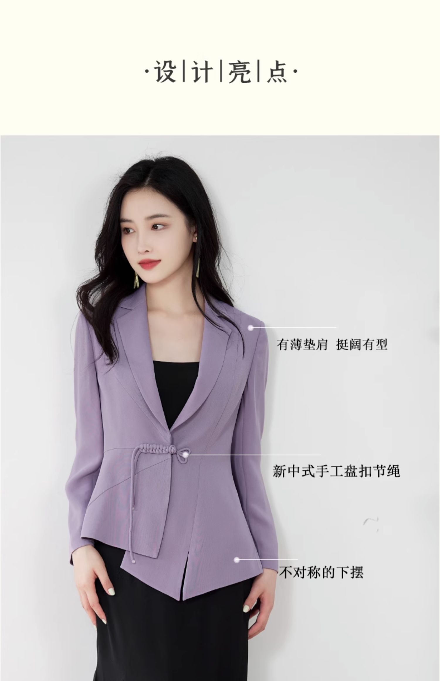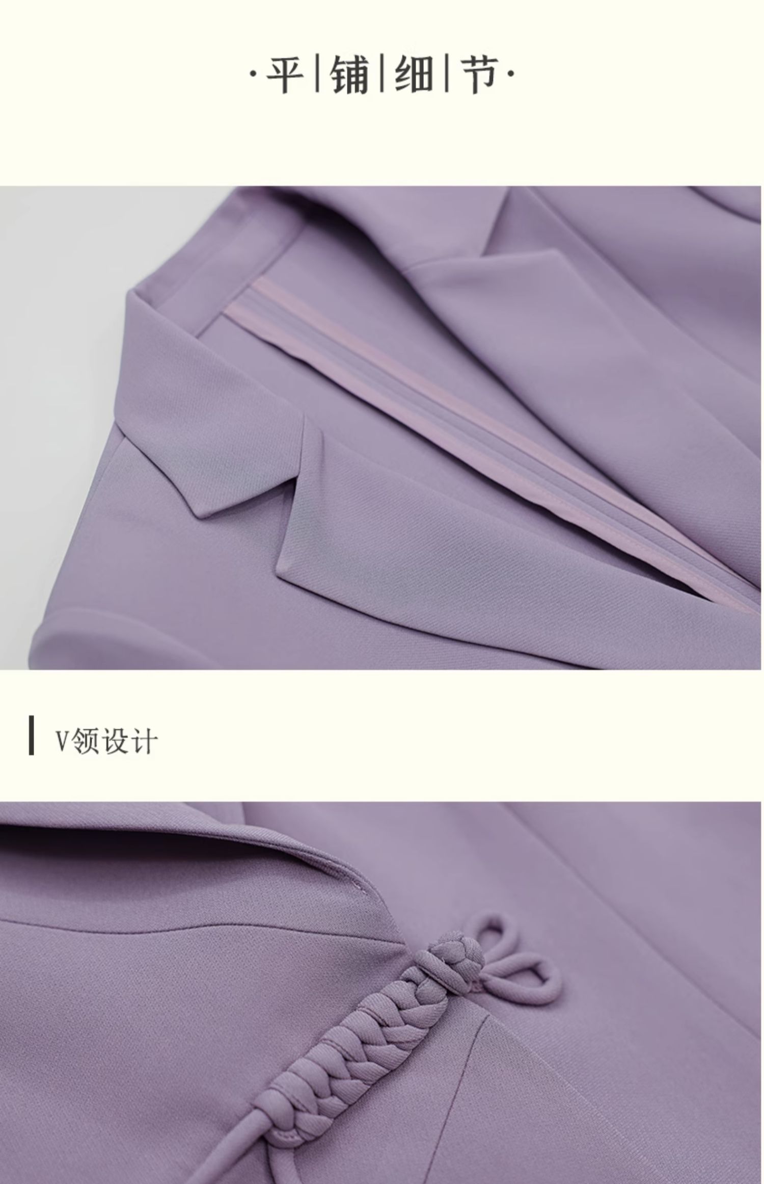 逸红颜 瑾瑟 2025年夏季新款九分袖紫色优雅斜纹料西装外套女