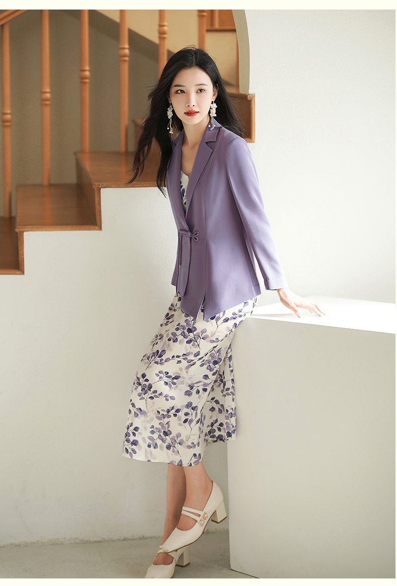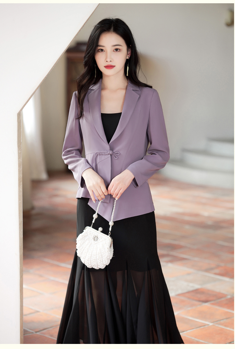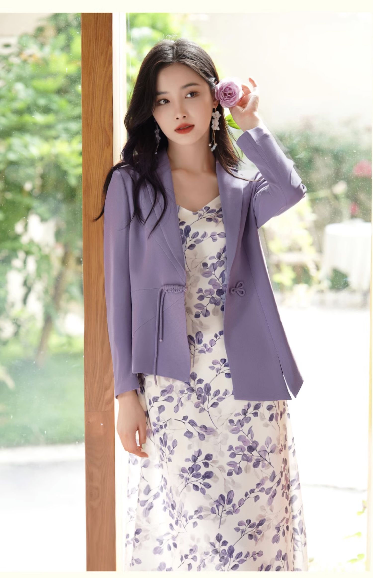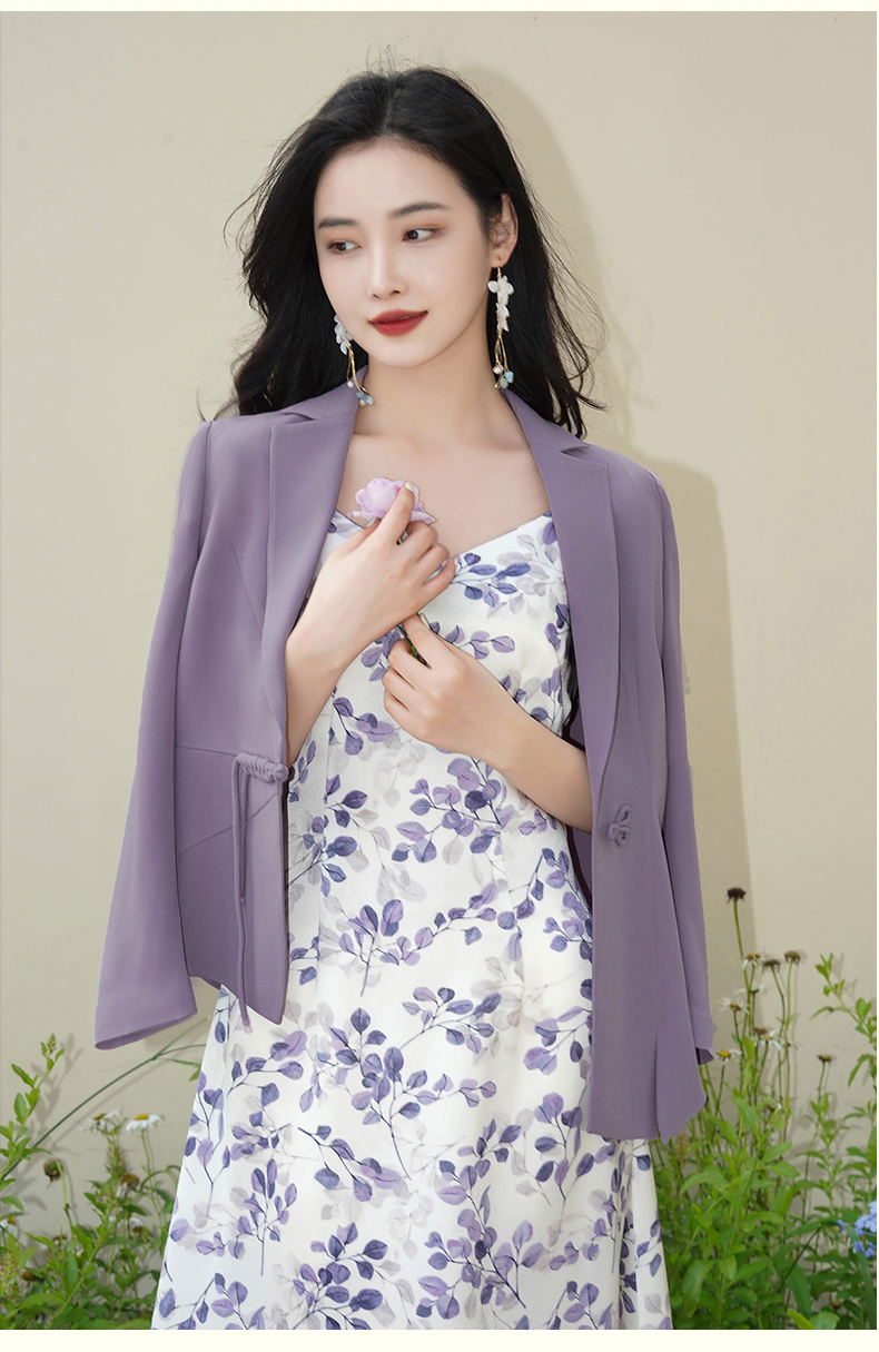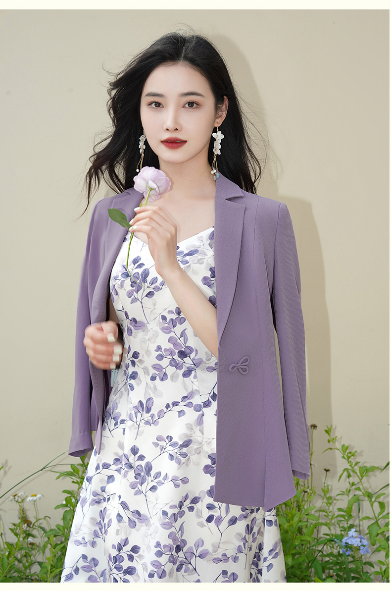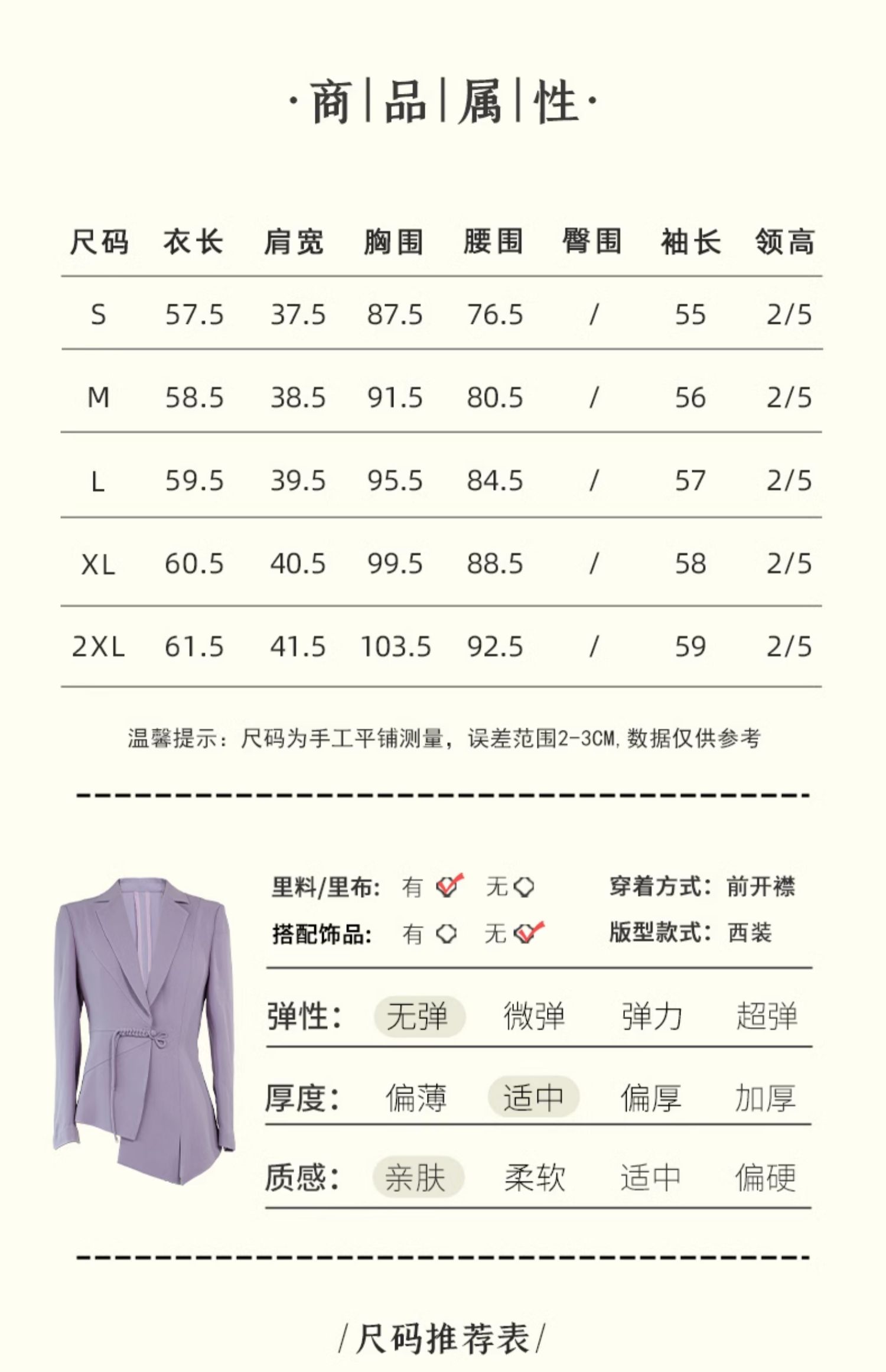 逸红颜 瑾瑟 2025年夏季新款九分袖紫色优雅斜纹料西装外套女