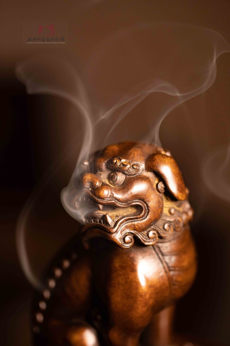 陈巧生制 c396座狮熏炉 铜炉香炉摆件