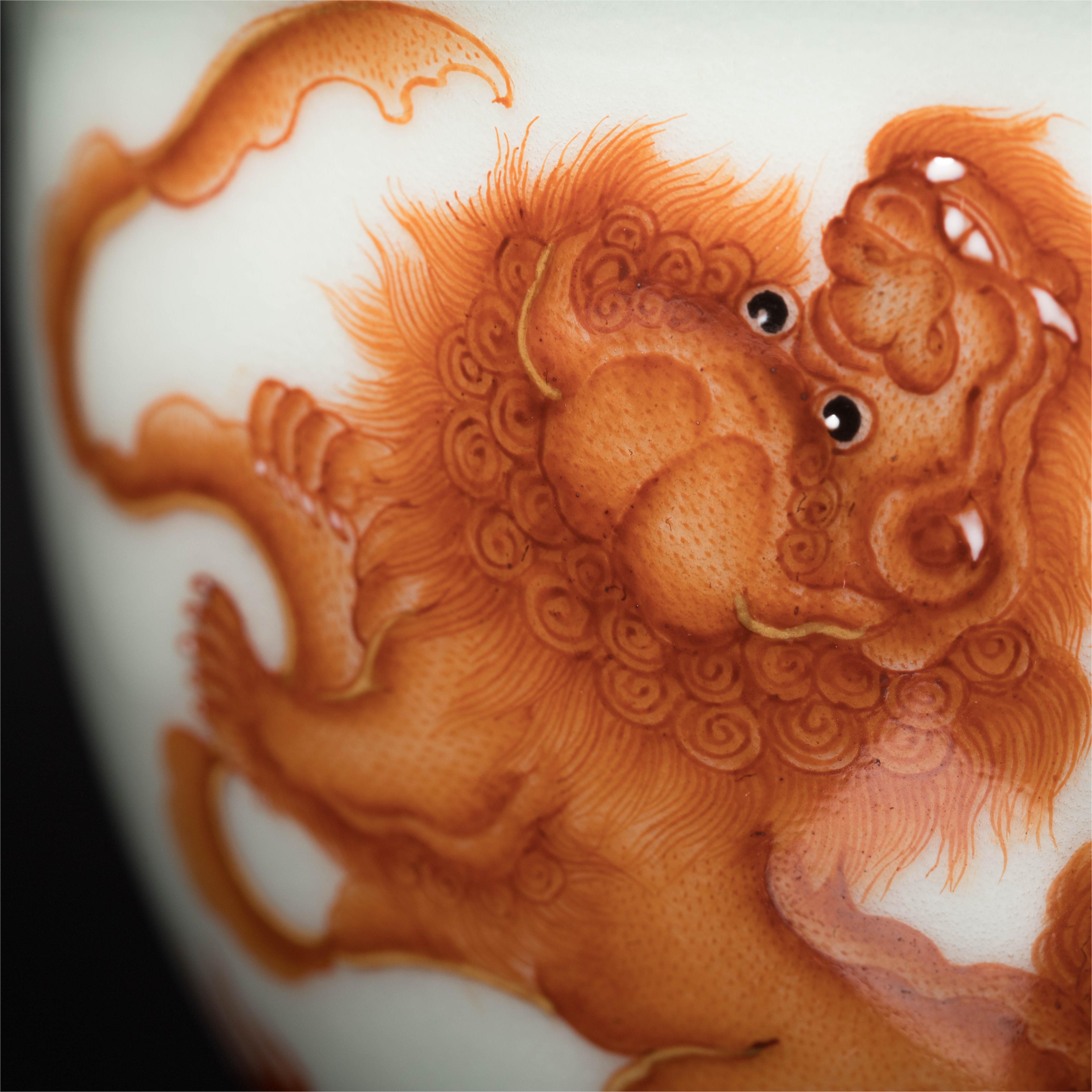 一儒堂翠边矾红双狮缸杯
