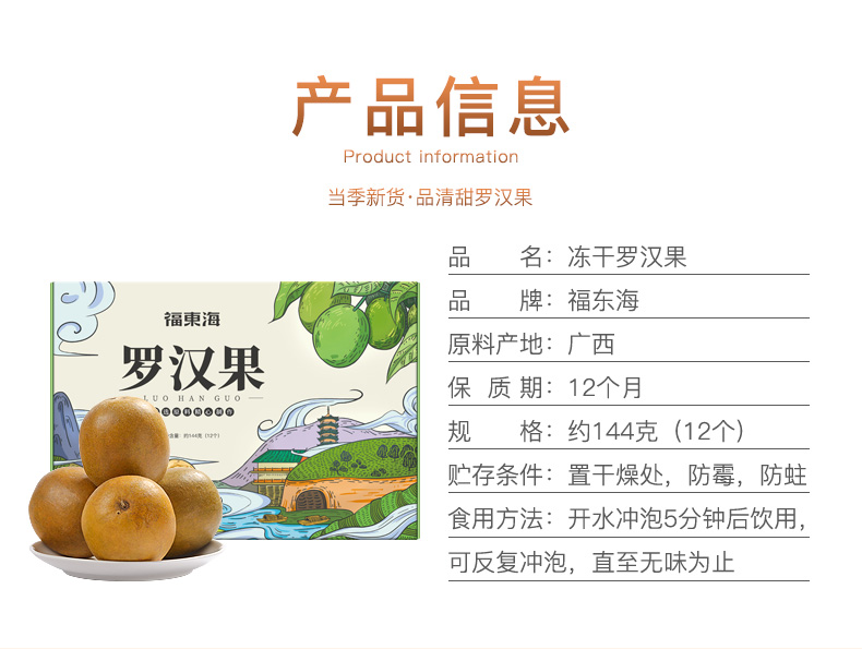 福东海 罗汉果12个/盒 冻干工艺锁住罗汉大果 花茶 泡水喝花果茶养生茶