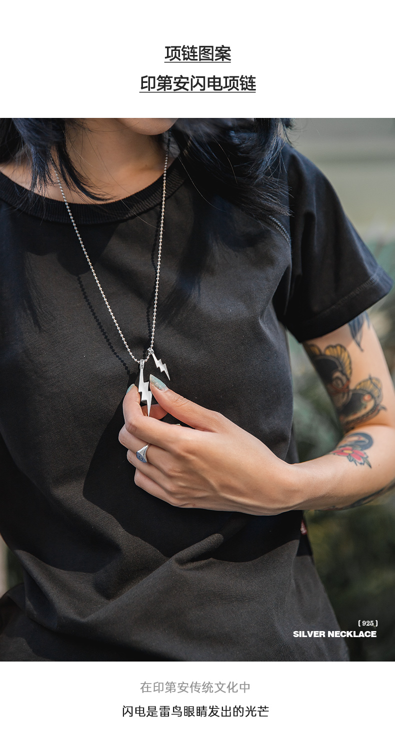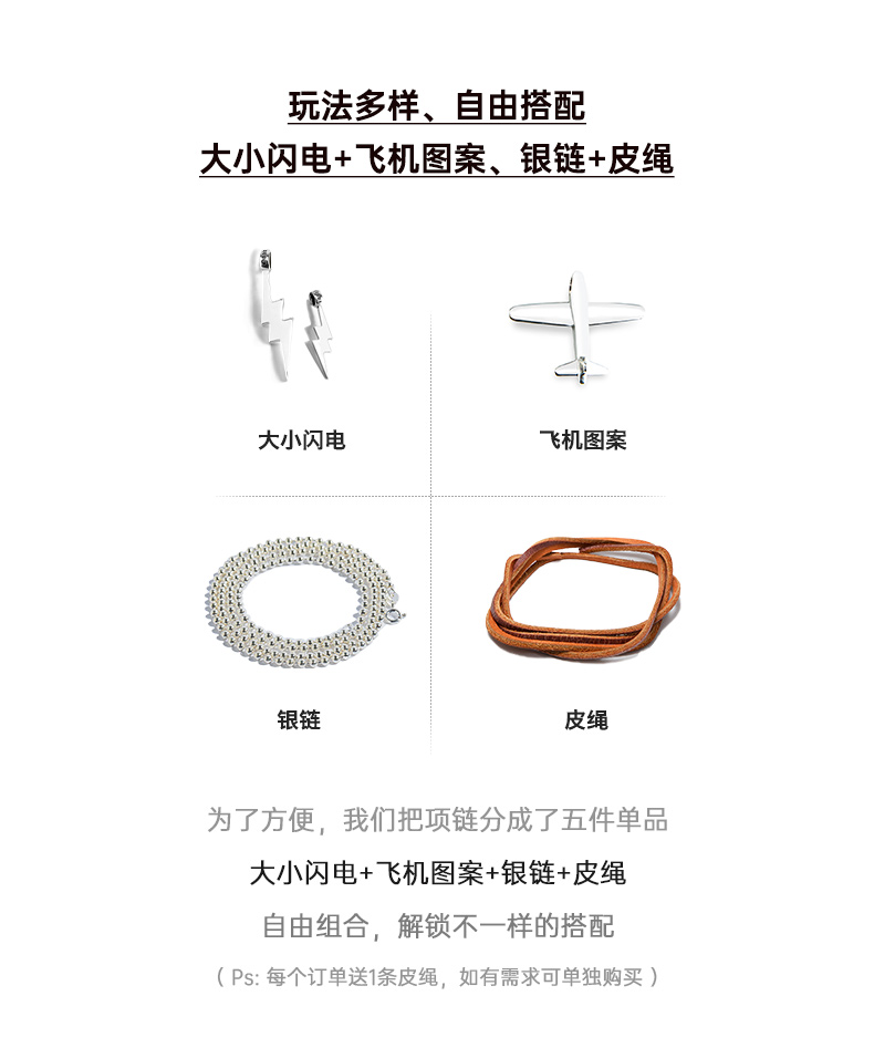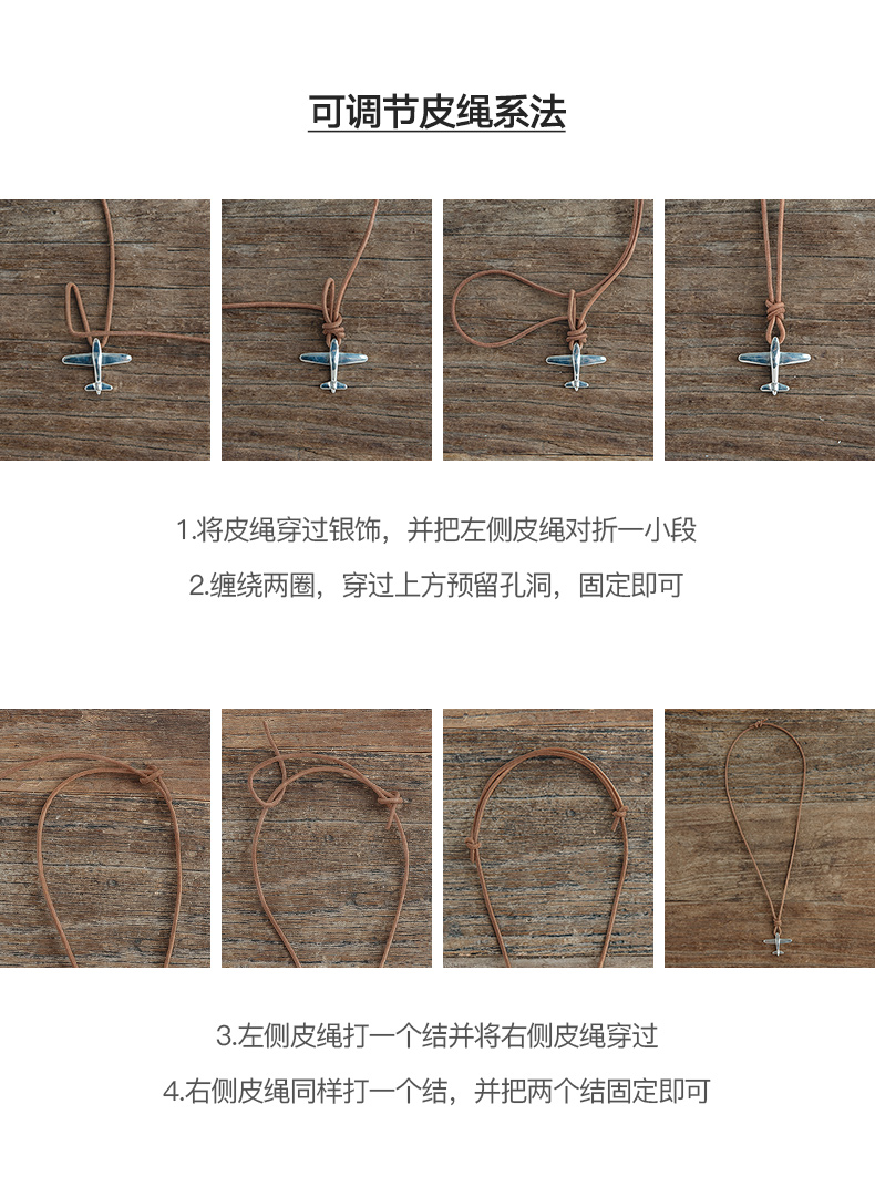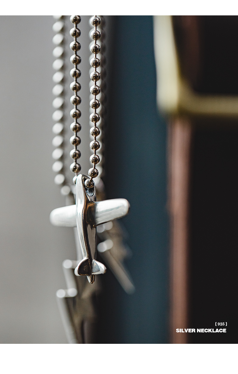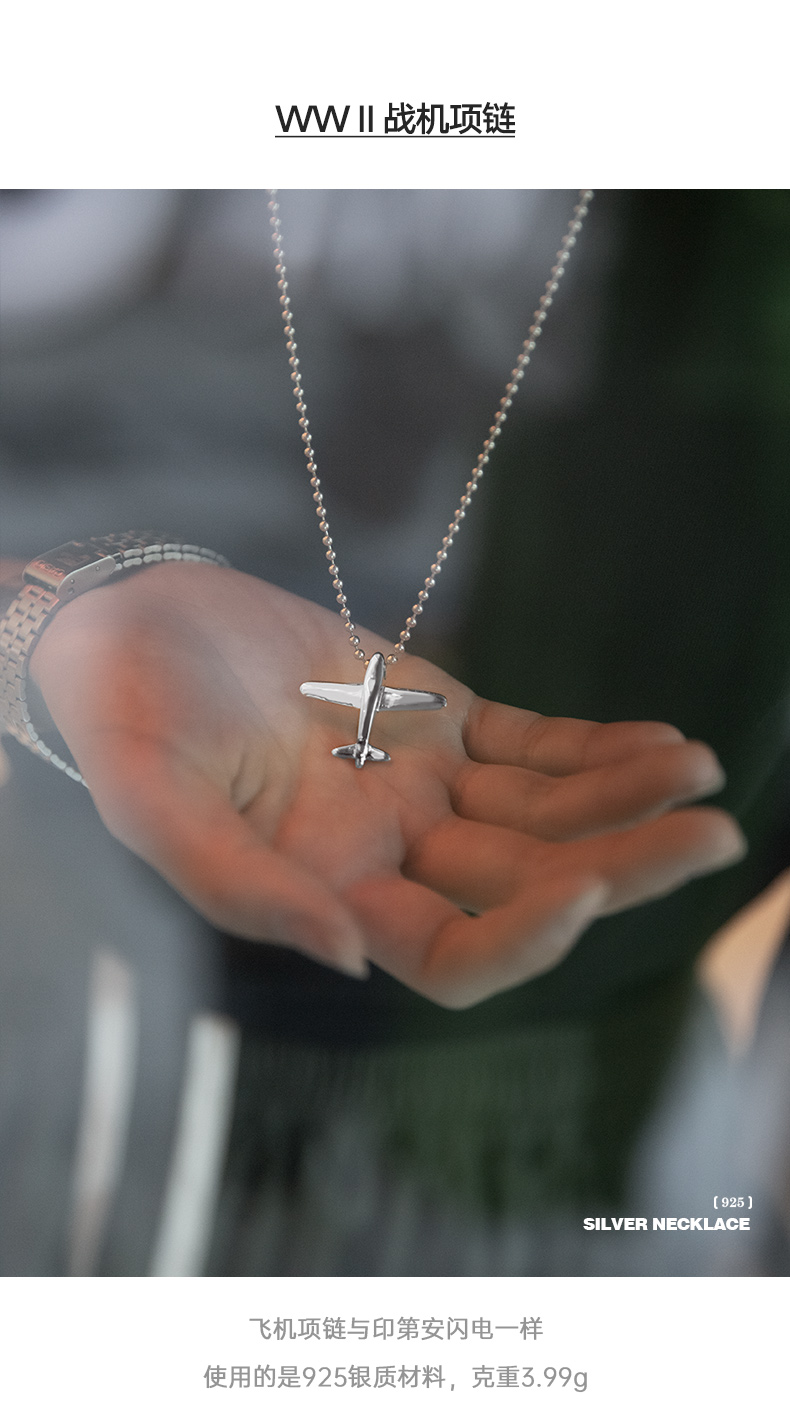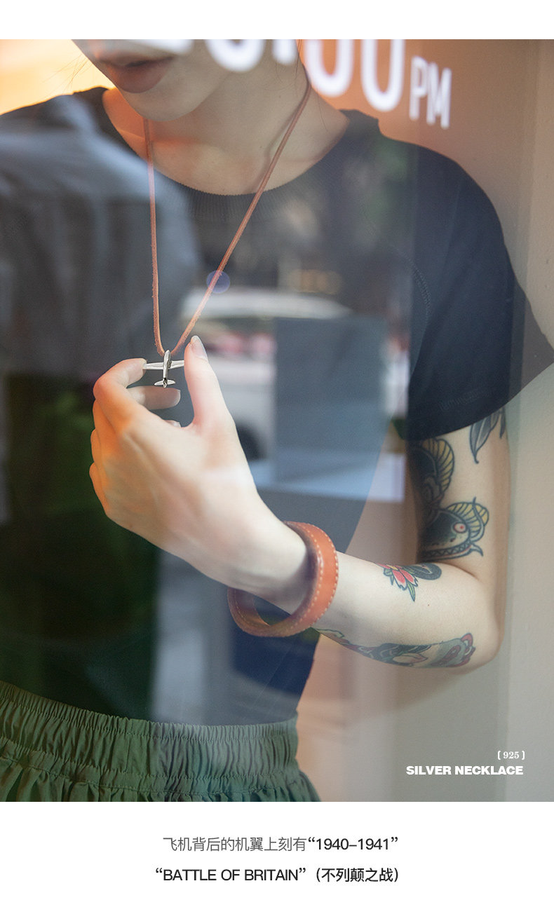 马登女装 复古二战飞机小闪电925纯银吊坠毛衣项链挂坠饰品牛皮绳