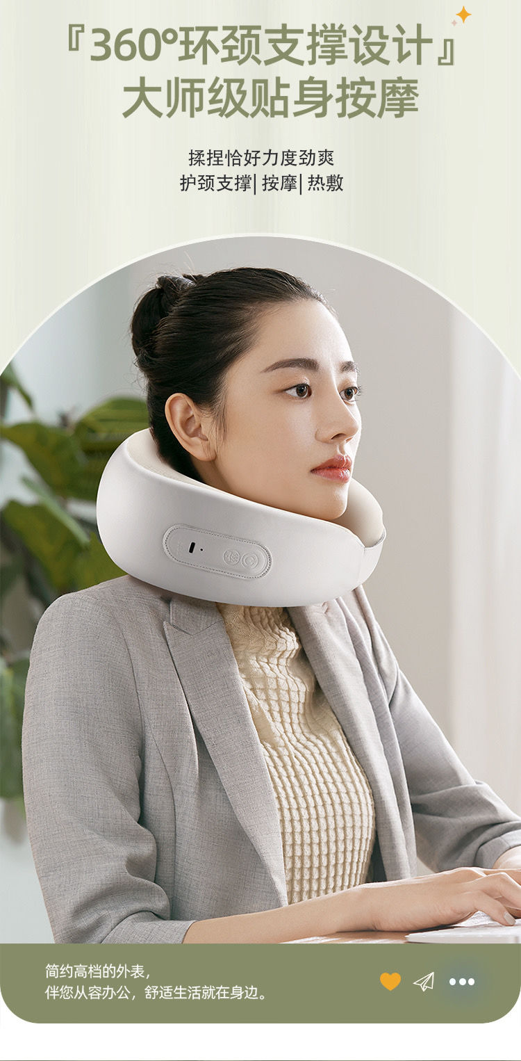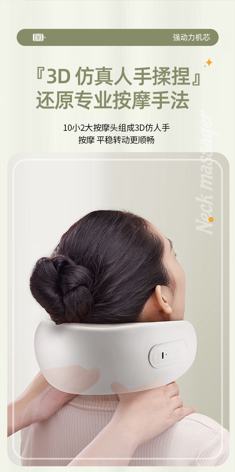官旗299❗ 机身仅约390g重量。3D仿人手揉捏触感 !360°环颈支撑✅≈40℃恒温热敷,双效舒缓。