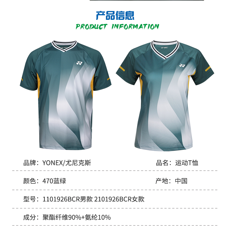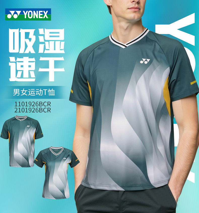 2026年新款YONEX尤尼克斯羽毛球服透气速干短袖1101926BCR男女款运动T恤