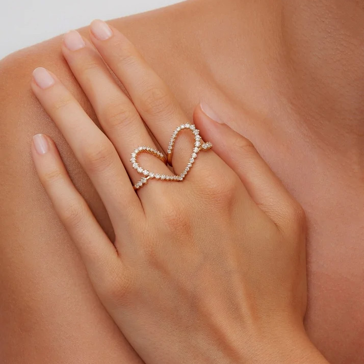 北京仓|Yvonne Leon-diamants or jaune 女性力量 双心 灰钻 戒指[法国设计师]