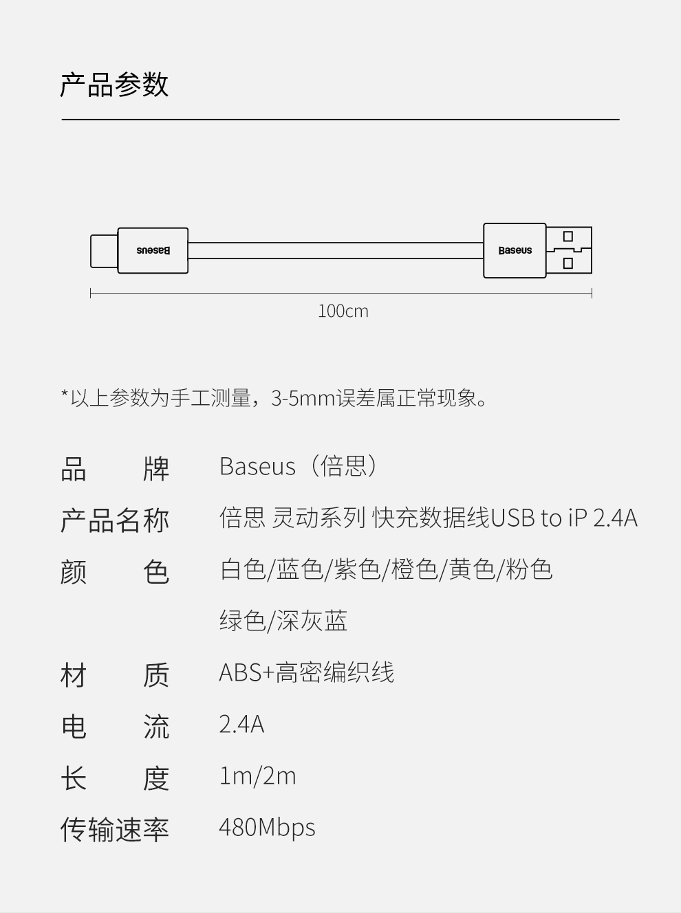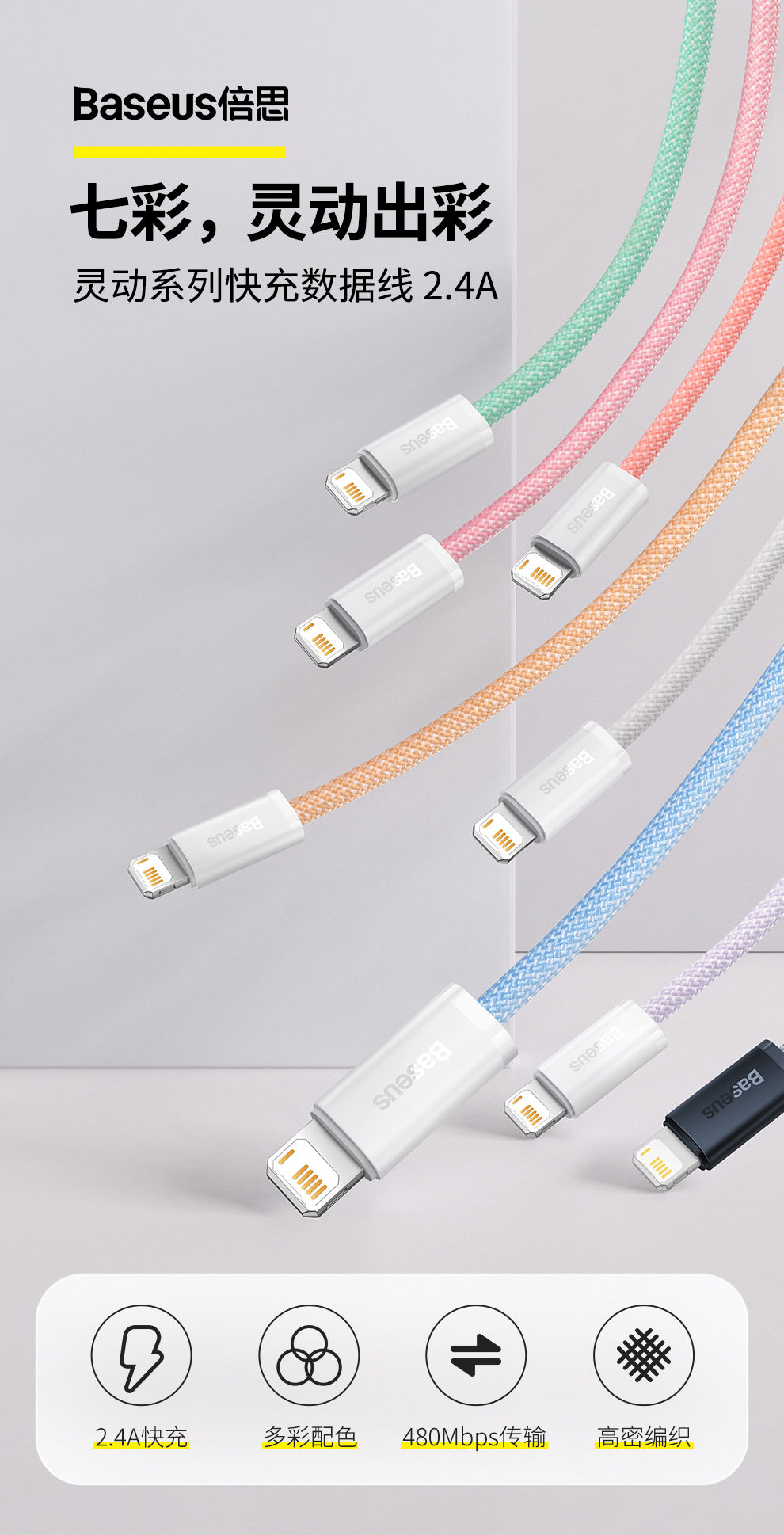 灵动系列 快充数据线USB to iPone 2.4A 苹果数据线适用苹果14/13/12