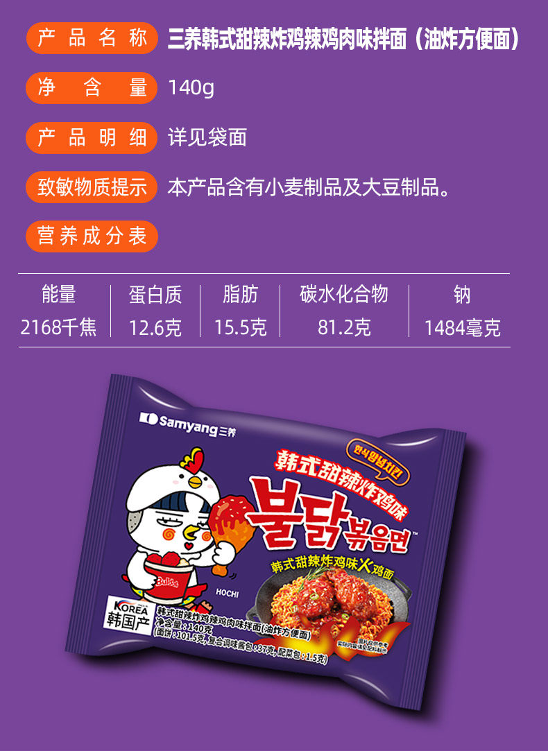 三养韩式甜辣炸鸡味火鸡面140g