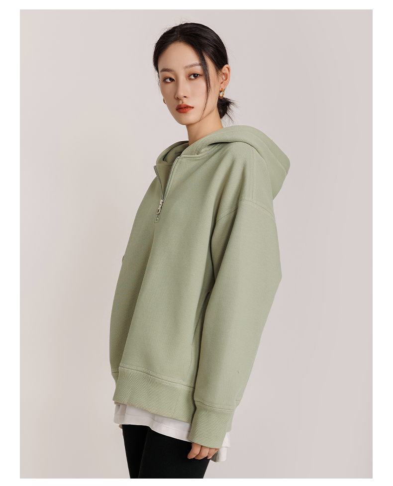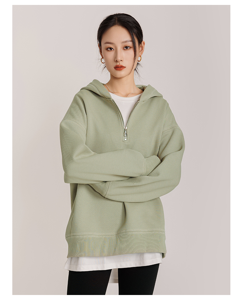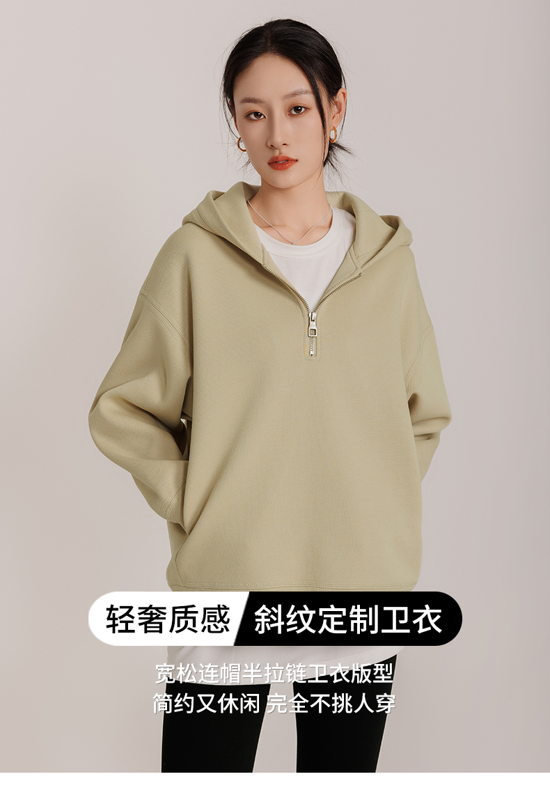 weyo新款女宽松斜纹定制质感轻奢纯色连帽卫衣881016 商品图1