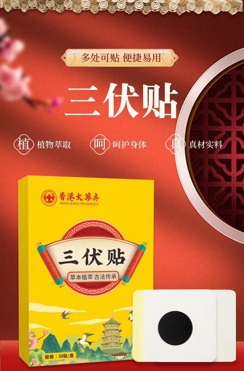 【买二送一❗️香港大药房三伏贴】多部位适用,哪里不爽贴哪里,植物成分深入热灸身体好轻松,艾灸贴温灸贴肚脐贴膏药贴,夏季三九贴艾草贴L