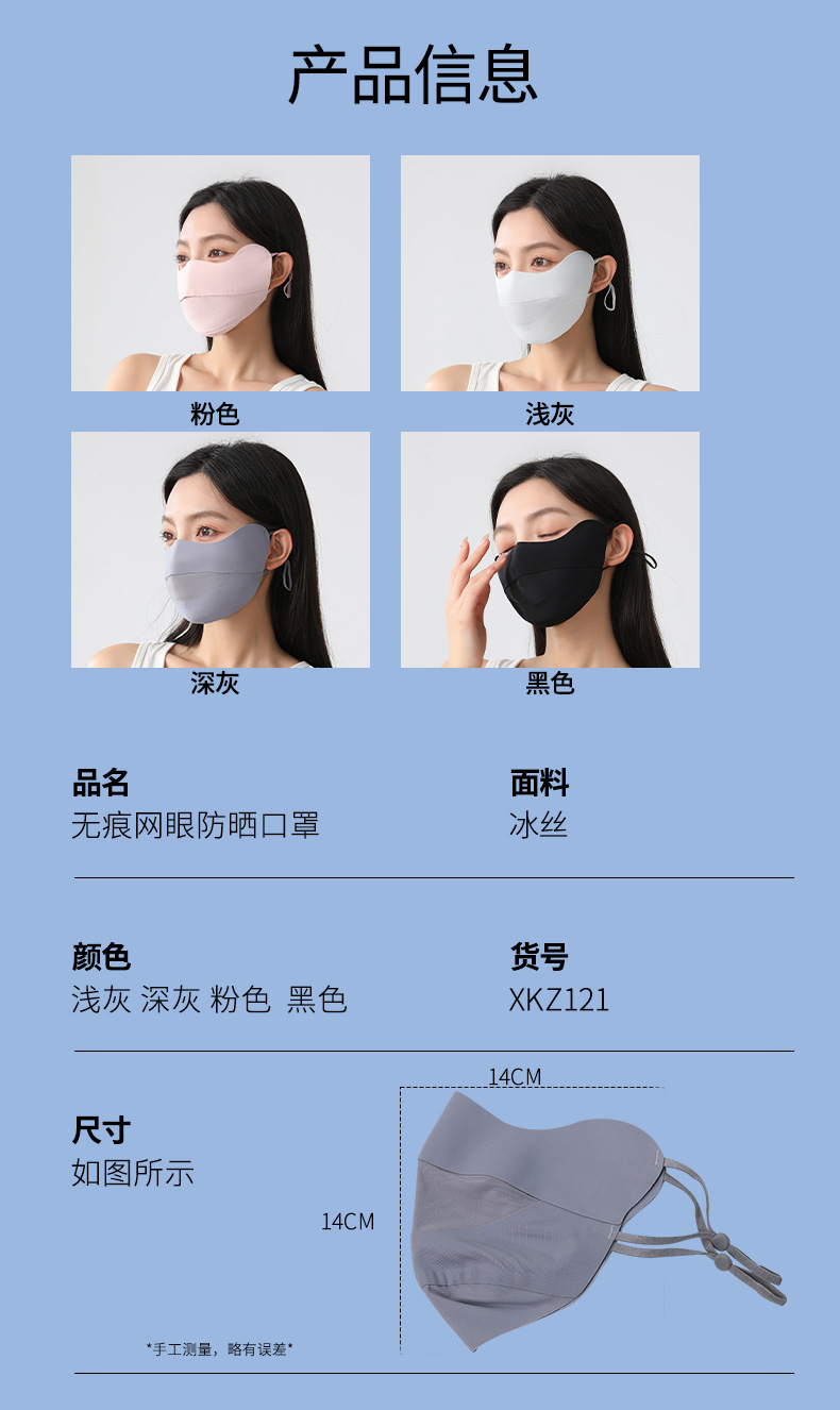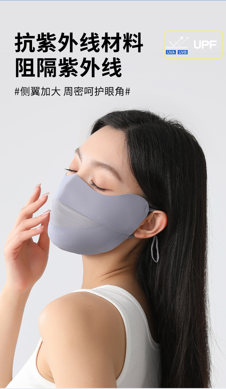 【明星同款❗防晒冰丝面罩】无痕网眼防晒口罩,抗紫外线材料,阻隔紫外线,鼻部呼吸自由清爽不闷气,薄透气冰丝护眼角遮阳全脸面罩L