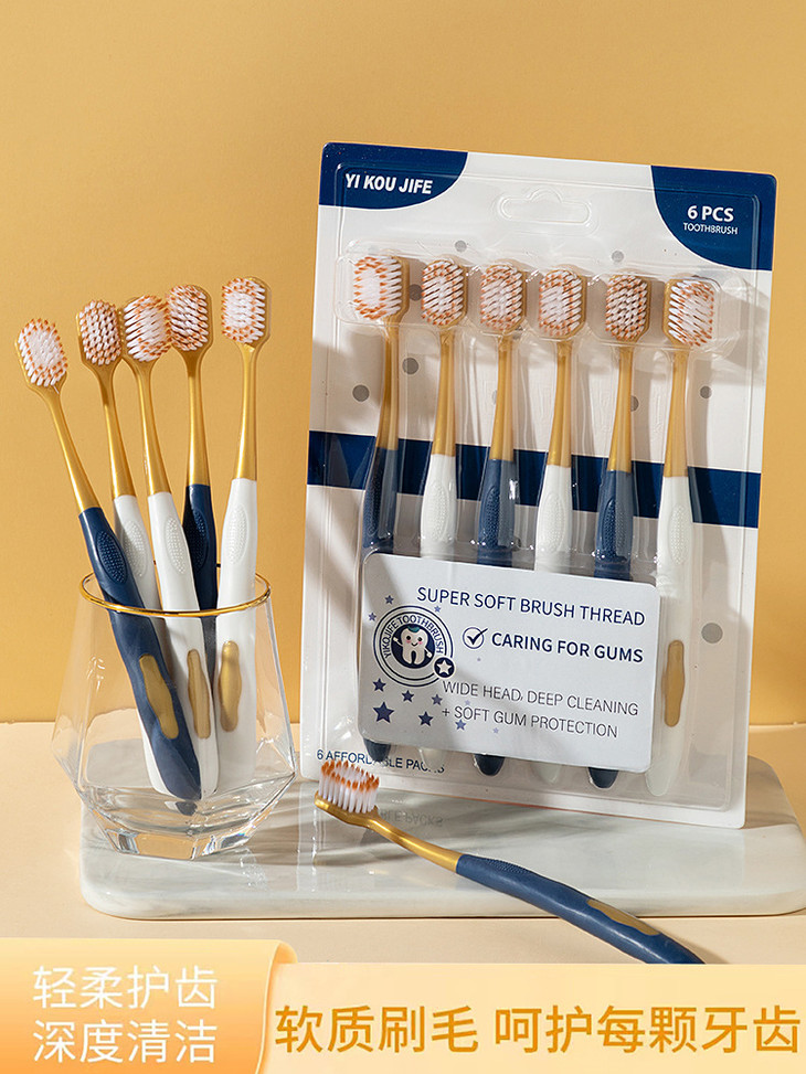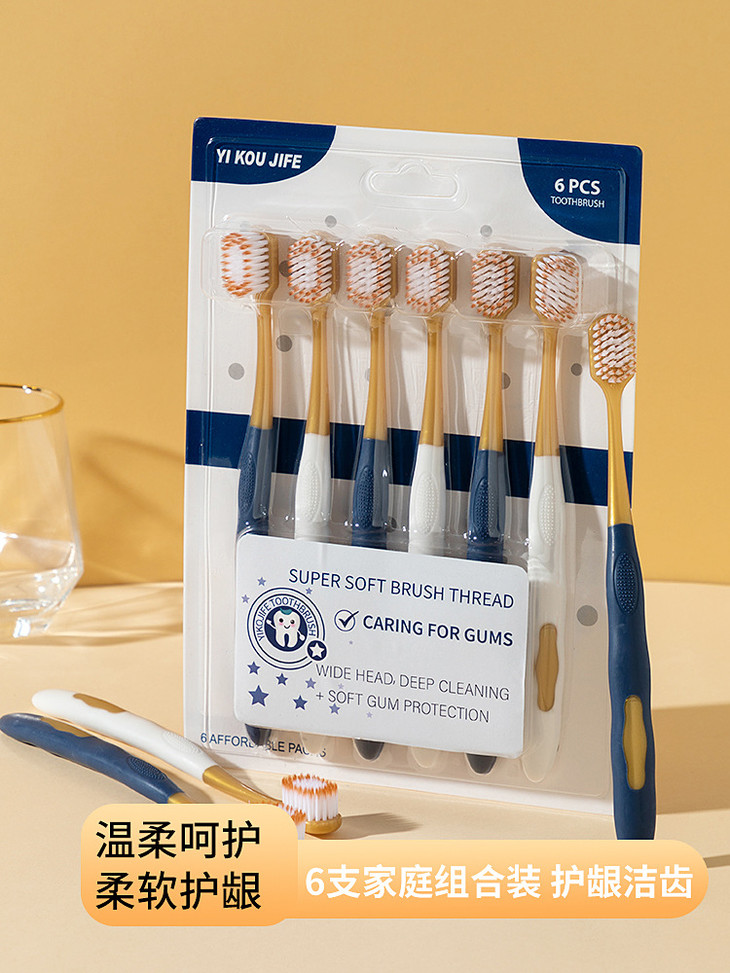 「9.9元到手6支!山姆同款」宽头家用6支装牙刷 男女通用成人软毛牙刷口腔护理