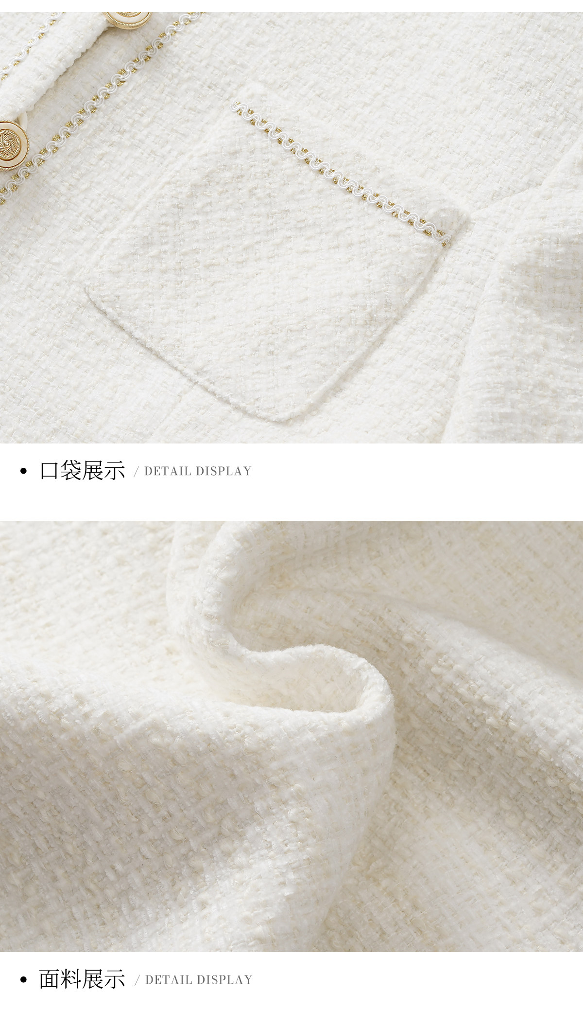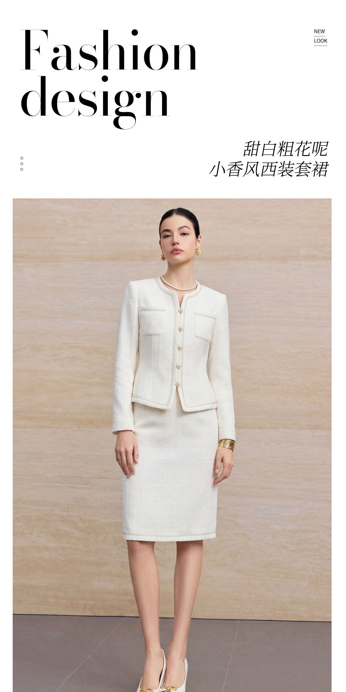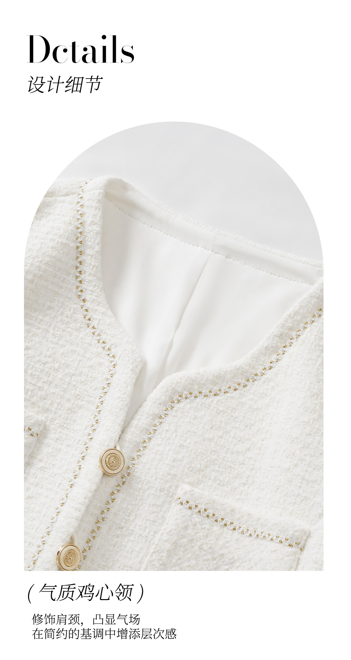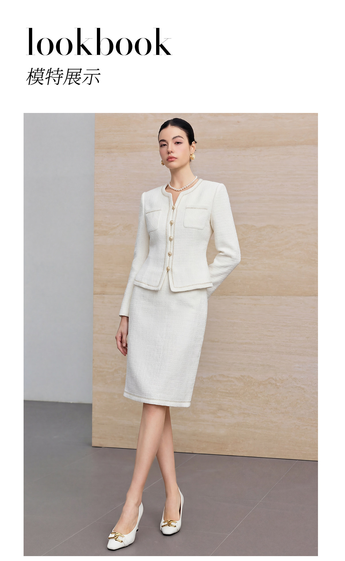 艾尚臣小香风套装女绵羊毛优雅风米白色金扣两件套气质职场套装春