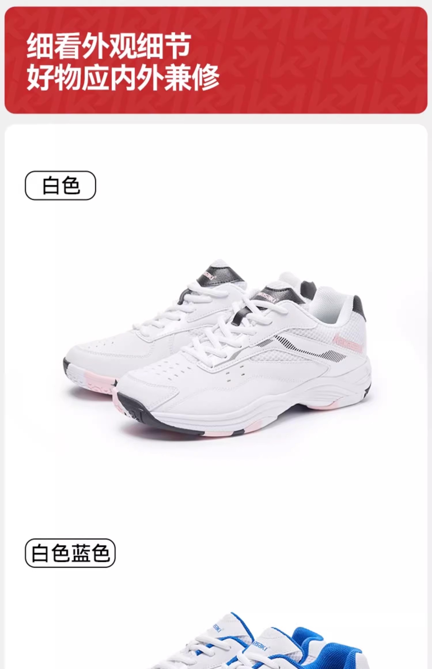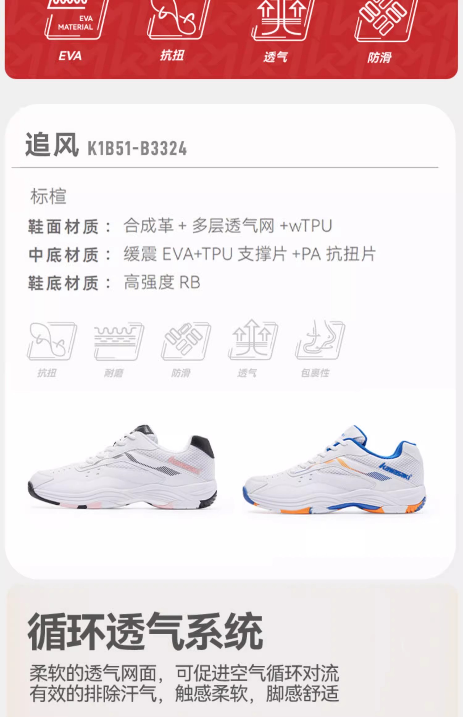 川崎 男女同款 羽毛球鞋 追风 白色/蓝色 K1B51-B3324-白色/白蓝色