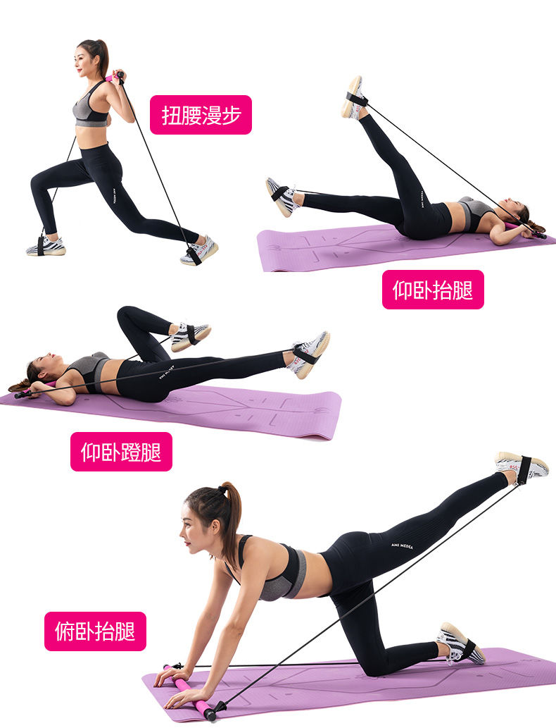 瑜伽器材普拉提棒 仰卧起坐辅助绳脚蹬拉力器