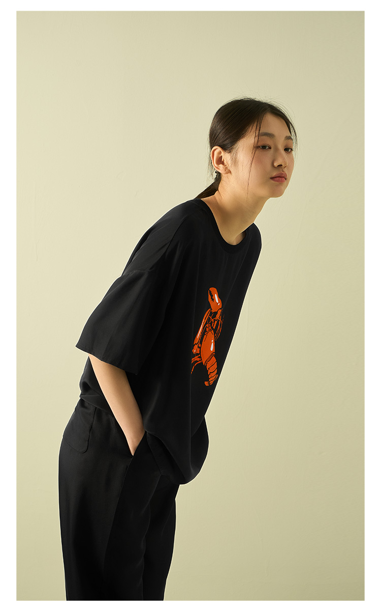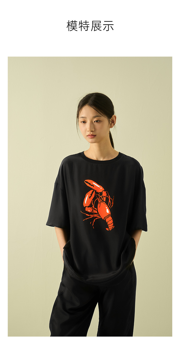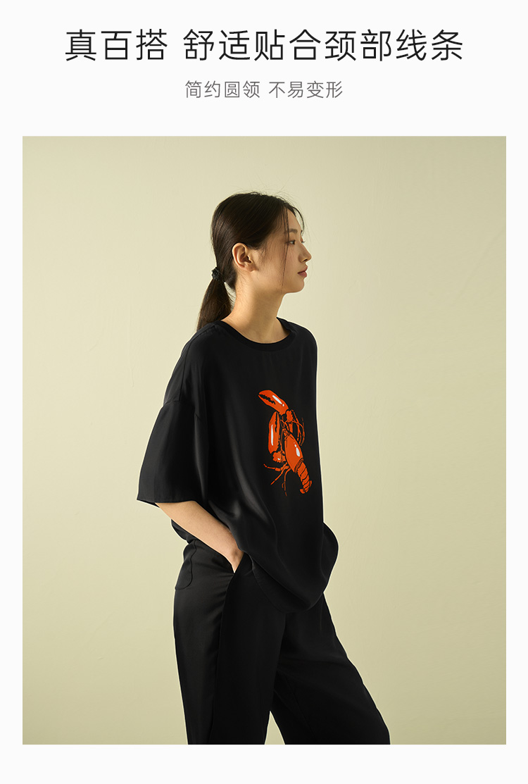 “有钱”桑罗真丝T恤无性别男女同款黑色短袖情侣款半袖上衣打底衫