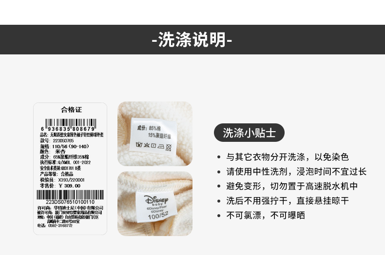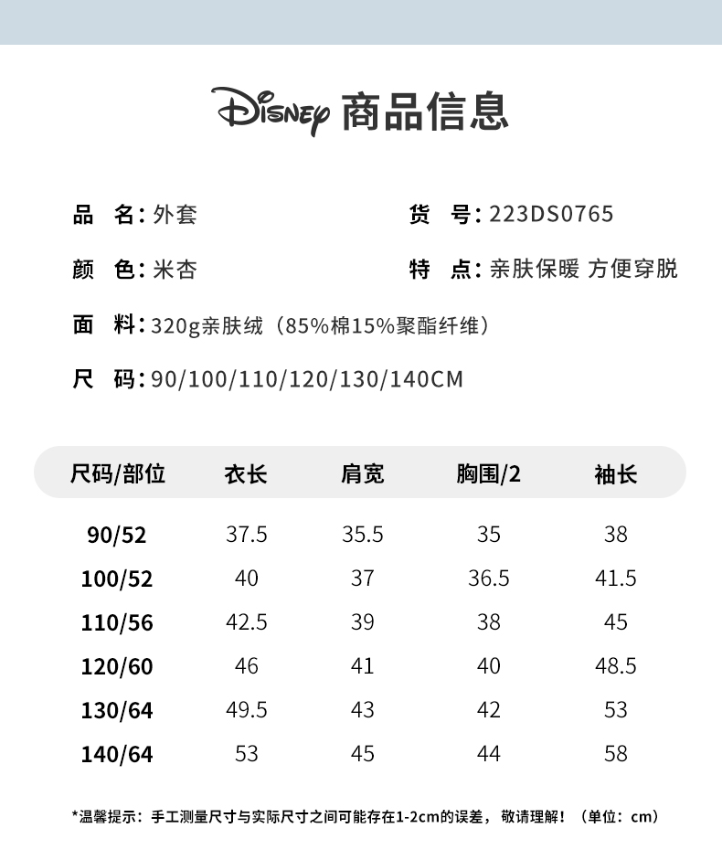 【商场同款】迪士尼女童秋季保暖加绒外套223DS0765