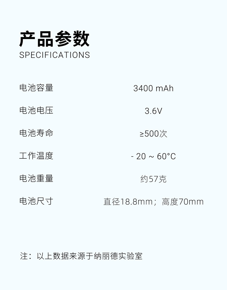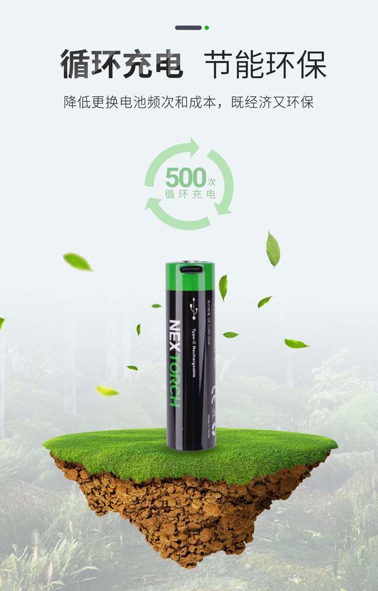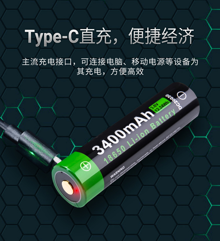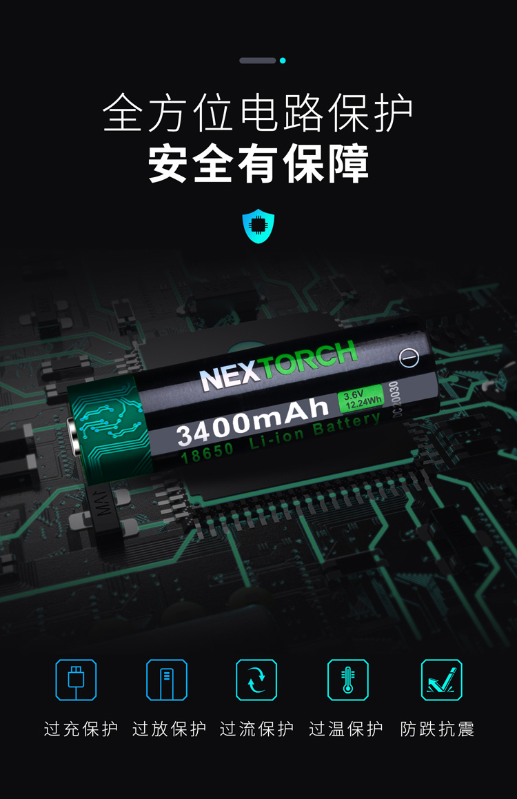 纳丽德(NEXTORCH)18650锂电池USB直充大容量3400毫安带充电线手电