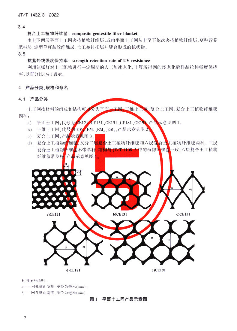 | 公路工程土工合成材料 第3部分:土工网(JT/T 1432.3—2022) | ||