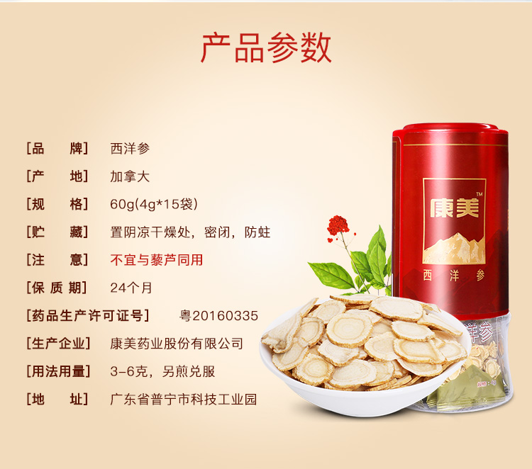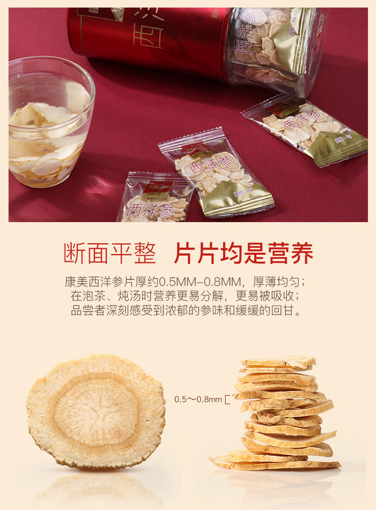 康美药业 西洋参60g(4g*15包)/瓶 加拿大进口西洋参片花旗参切片含片